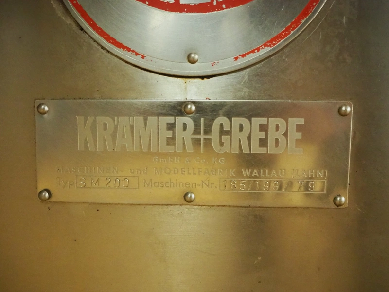 Krämer+Grebe cutter with ejector, type: SM200, machine number: 185/199/79, steel bowl, volume: 200 liter, dimensions: 2100 mm x 2100 mm x 1800 mm. Without switch cabinet.