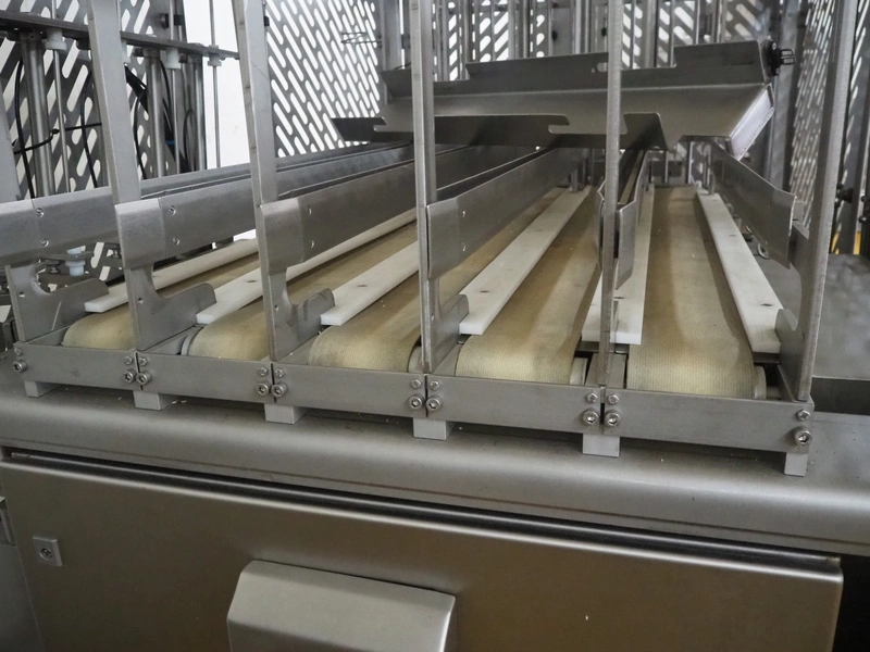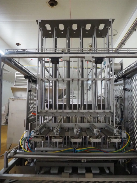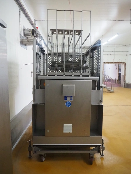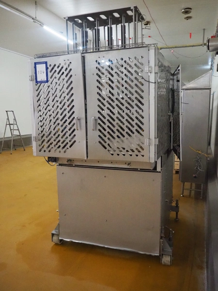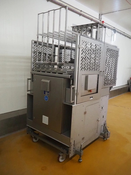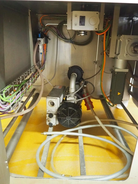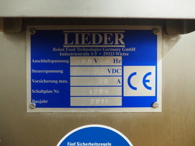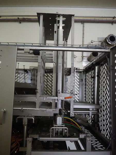 Lieder mobile denester, year of construction: 2011, 400 V, 50 Hz, 20 A, Busch vacuum pump, type: RA 0025 F 503, number: 110012020, year of construction: 2011, capacity: 25 m³ per hour, plastic belts, belt width: (5x) 100 mm, total dimensions: 1900 mm x 1400 mm x 2700 mm.