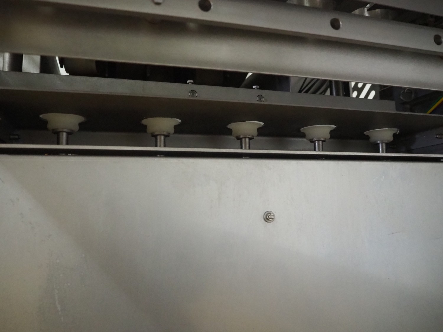 Lieder mobile denester, year of construction: 2011, 400 V, 50 Hz, 20 A, Busch vacuum pump, type: RA 0025 F 503, number: 110012020, year of construction: 2011, capacity: 25 m³ per hour, plastic belts, belt width: (5x) 100 mm, total dimensions: 1900 mm x 1400 mm x 2700 mm.
