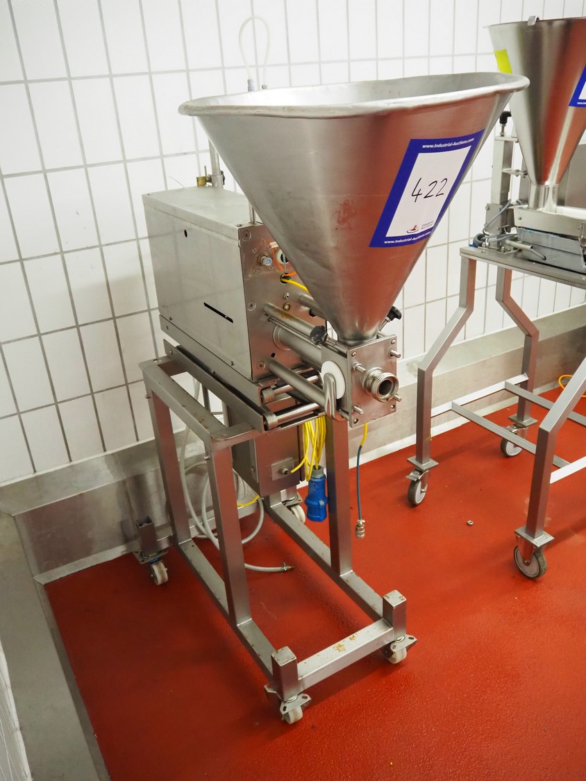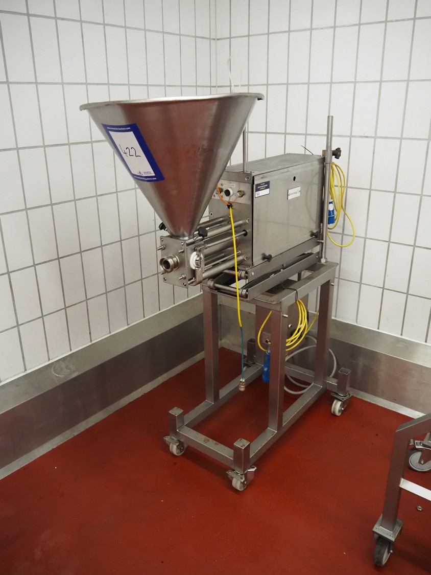 Turbo system mobile depositor, dimensions funnel: 530 mm x 430 mm, total dimensions: 1150 mm x 610 mm x 1540 mm.