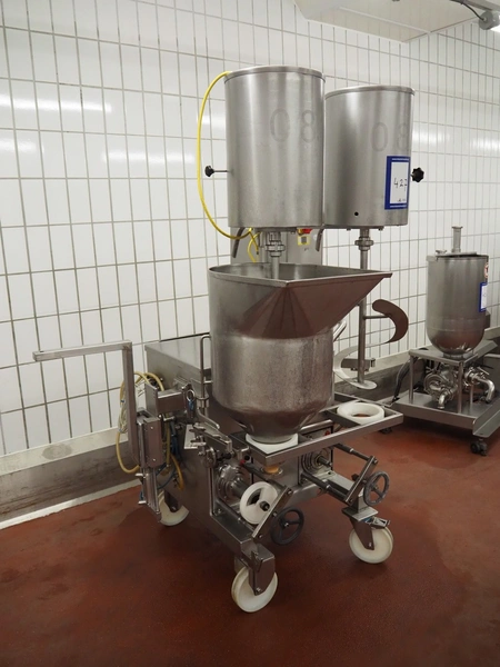Würschum mobile dosing machine, type: PMS 200, funnel: diameter: 420 mm x 600 mm, total dimensions: 1600 mm x 1700 mm x 2000 mm. Incomplete.