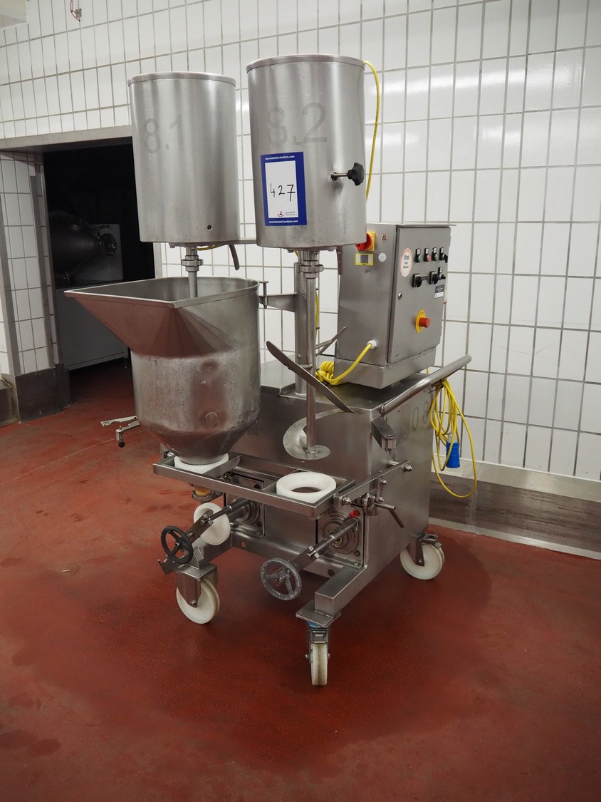 Würschum mobile dosing machine, type: PMS 200, funnel: diameter: 420 mm x 600 mm, total dimensions: 1600 mm x 1700 mm x 2000 mm. Incomplete.
