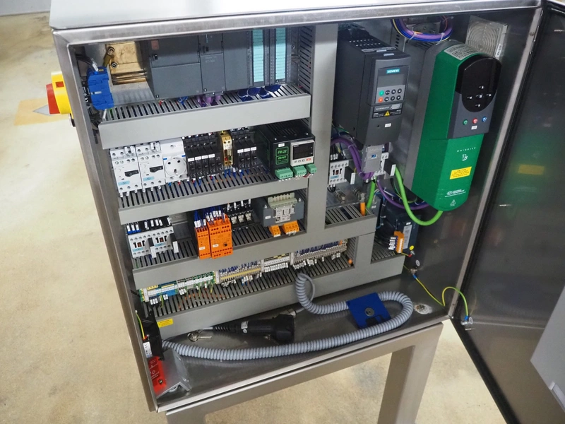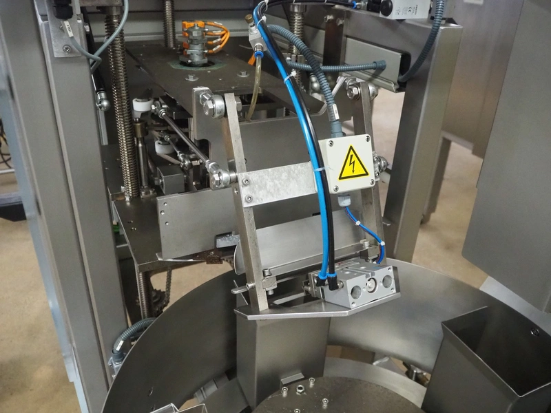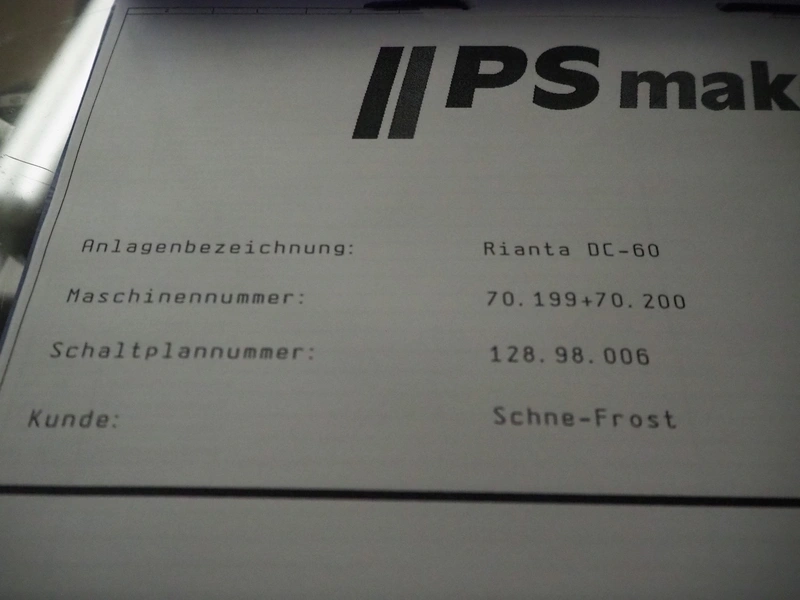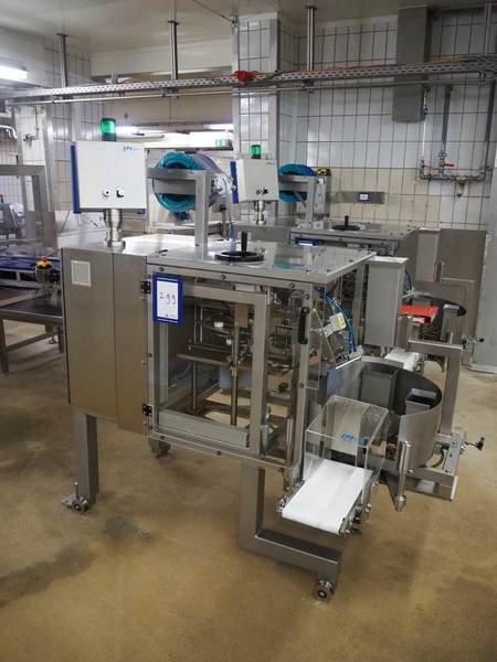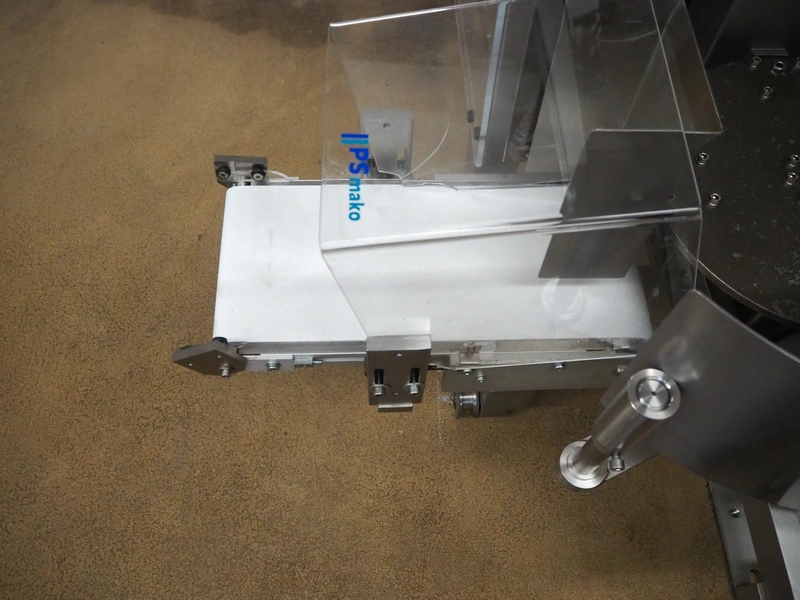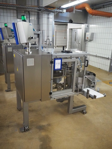 P+S Mako mobile bag filling and clipping machine, type: DC 60-CSP, machine number: 70.199, year of construction: 2004, 400 V, 3 Ph, 50 Hz, 4 A, dimensions chamber: 140 mm x 120 mm, plastic outfeed belt, belt width: 200 mm, total dimensions: 1800 mm x 1200 mm x 1900 mm.