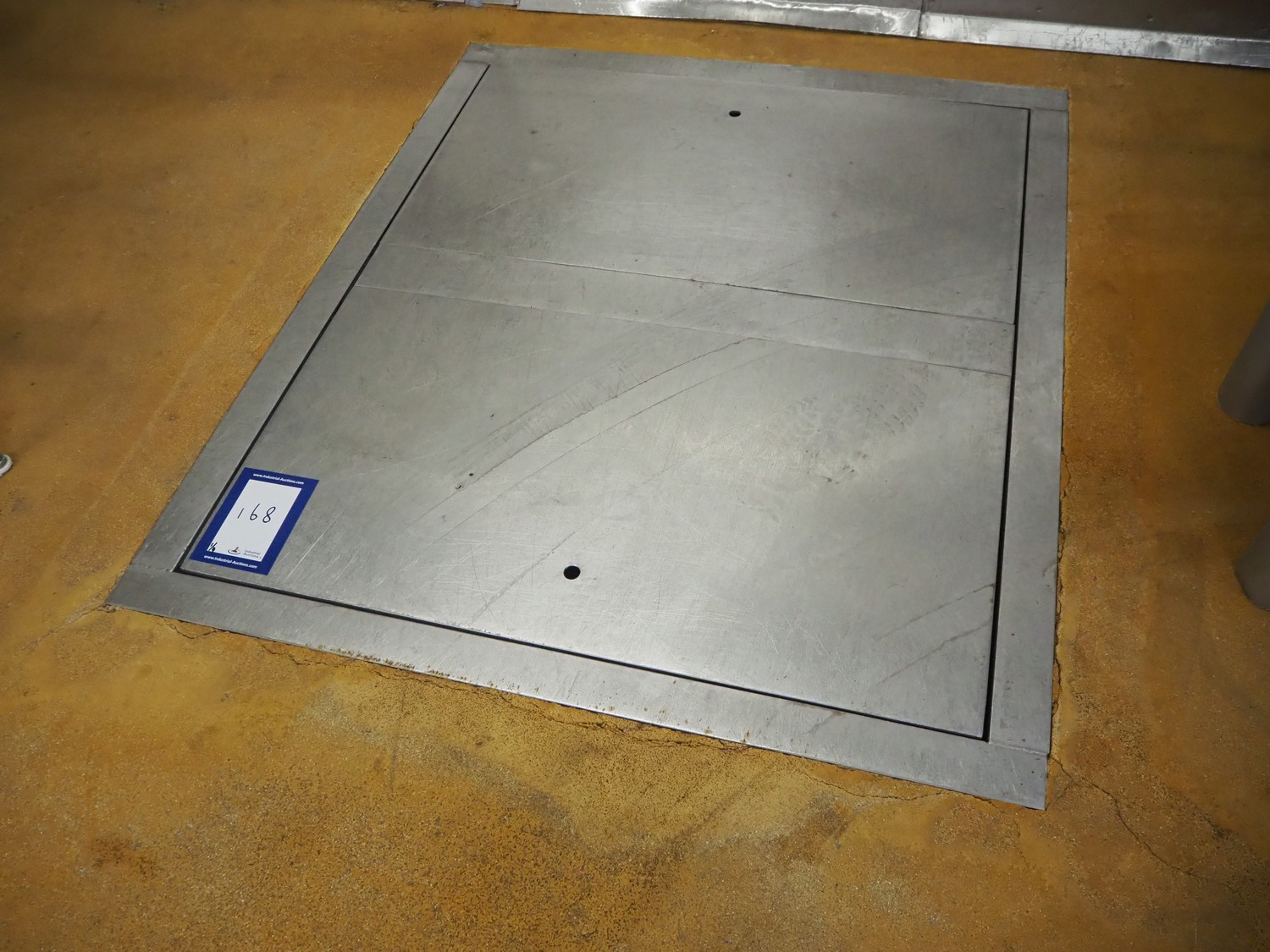 Höfelmeyer Waagen GmbH floor weighing scale, maximum: 1500 kg, d: 0.5 kg, dimensions scale: 1250 mm x 1500 mm, Höfelmeyer Waagen GmbH indicator, model: HTF 300, serial number: 040442, last calibrated: 11-2023. With s/s film roll holder.