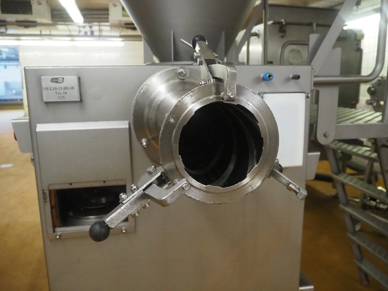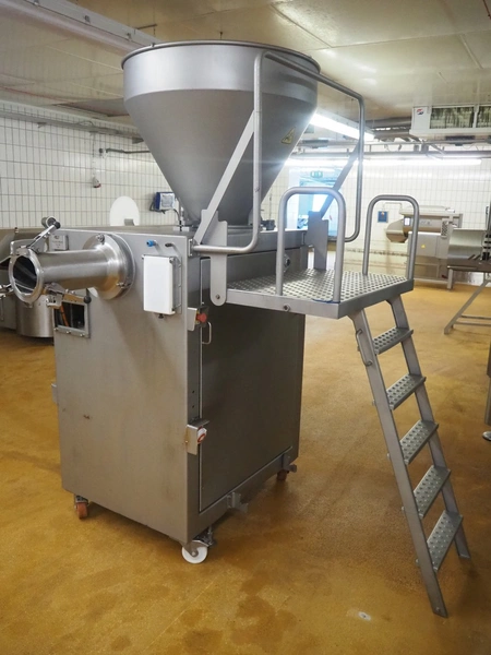 Stork Titan B.V. mobile forming and portioning machine, model: TEX 10, serial number: 10061767, year of construction: 2007, diameter worm: 150 mm, total dimensions: 2200 mm x 1700 mm x 2450 mm. Missing worm and plates.