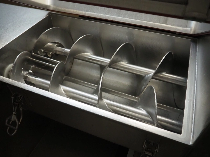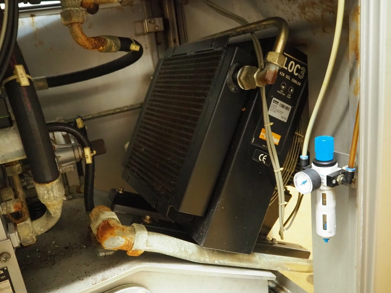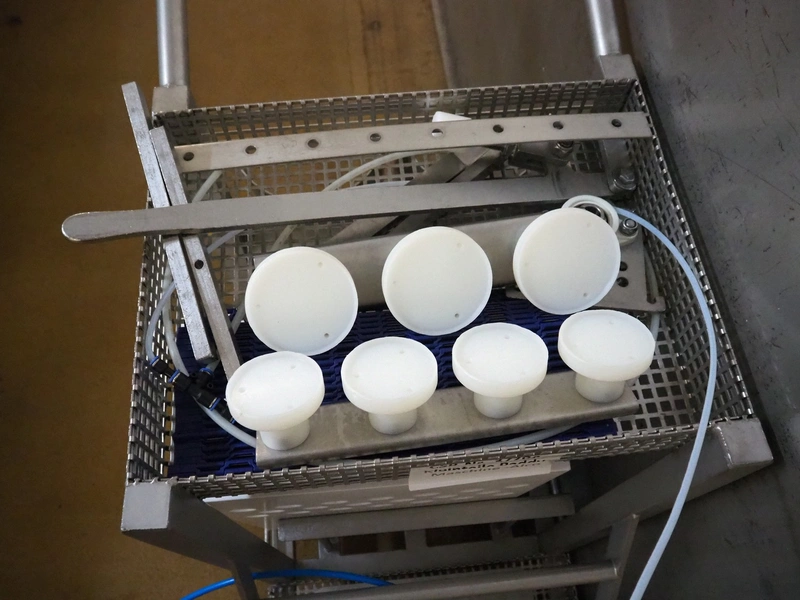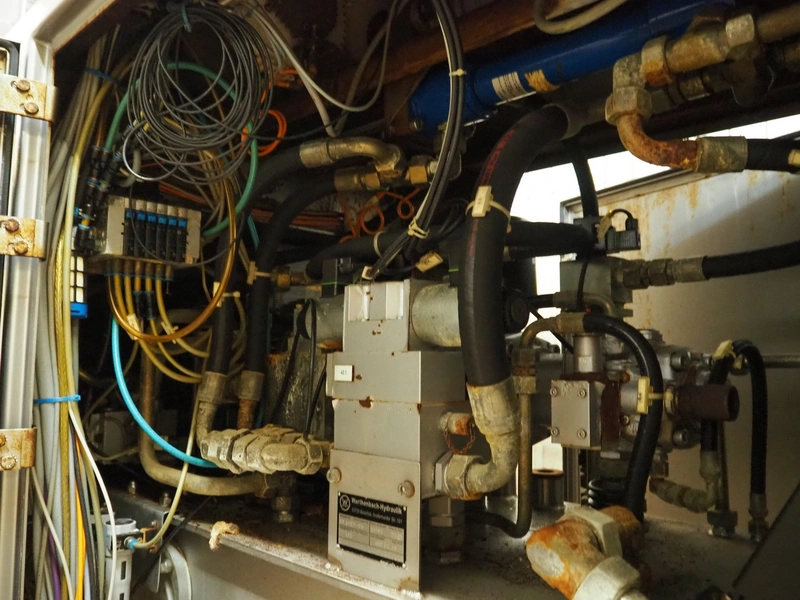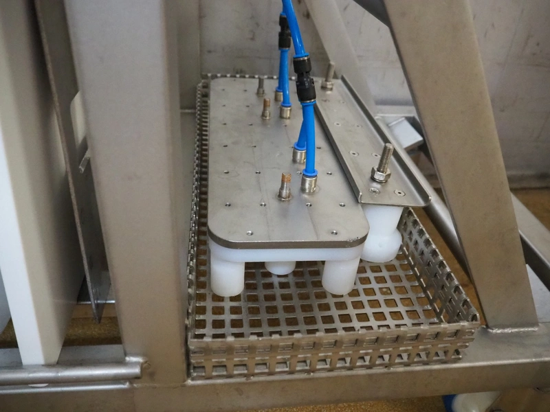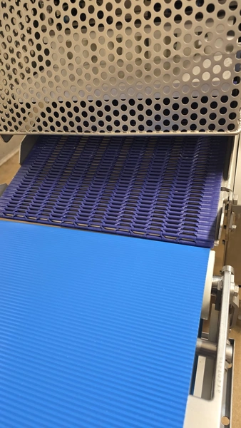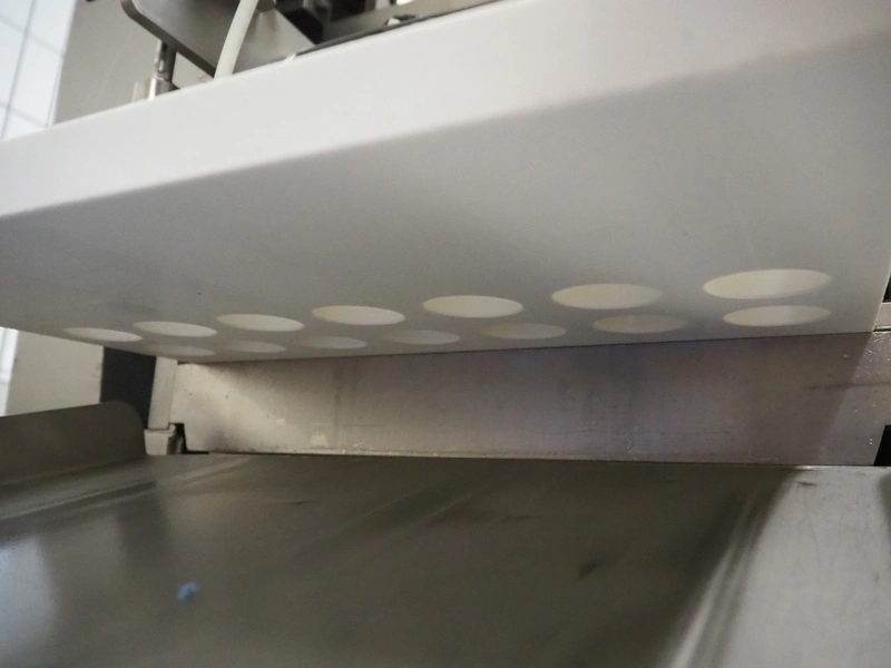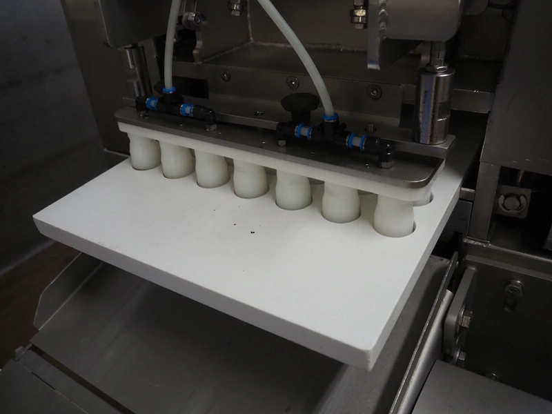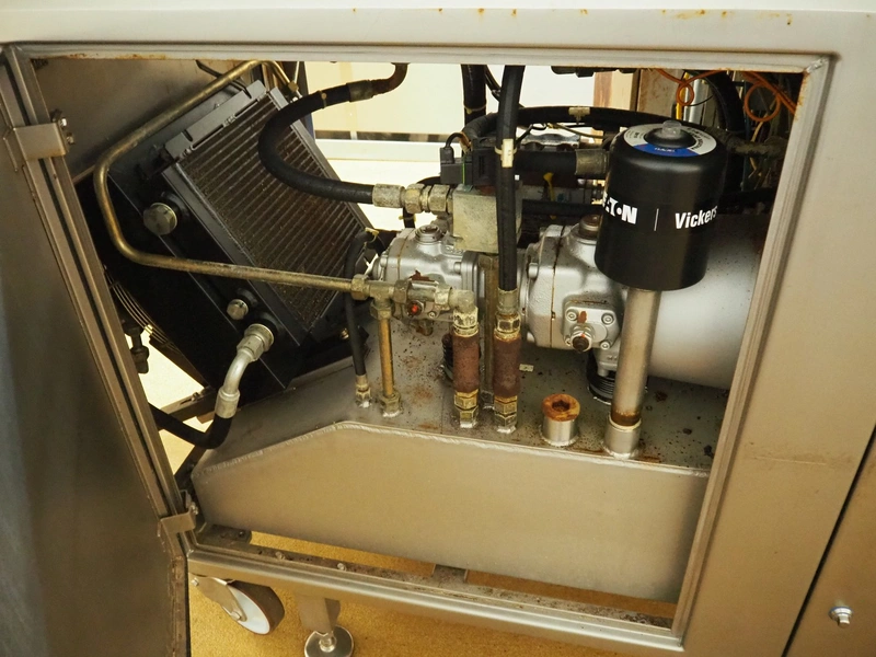 Alco Food-Machines GmbH&Co.KG mobile forming machine, type: AFM 400-PC, serial number: 03304216, year of construction: 2005, 400 V, 17 kW, plastic mesh outfeed belt, belt width: 400 mm, dimensions dye: Ø 40 mm, total dimensions: 2600 mm x 850 mm x 1950 mm. With tool trolley with forming plates, dimensions: 1300 mm x 600 mm x 2100 mm.