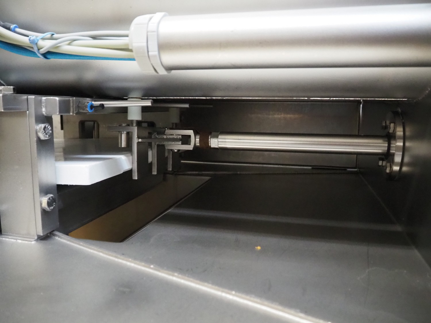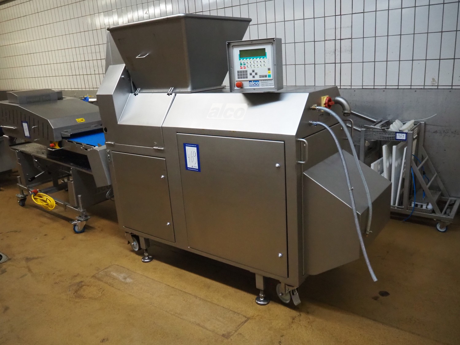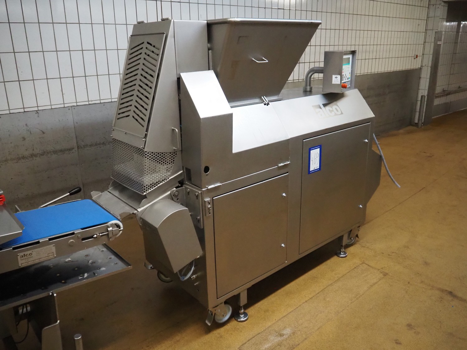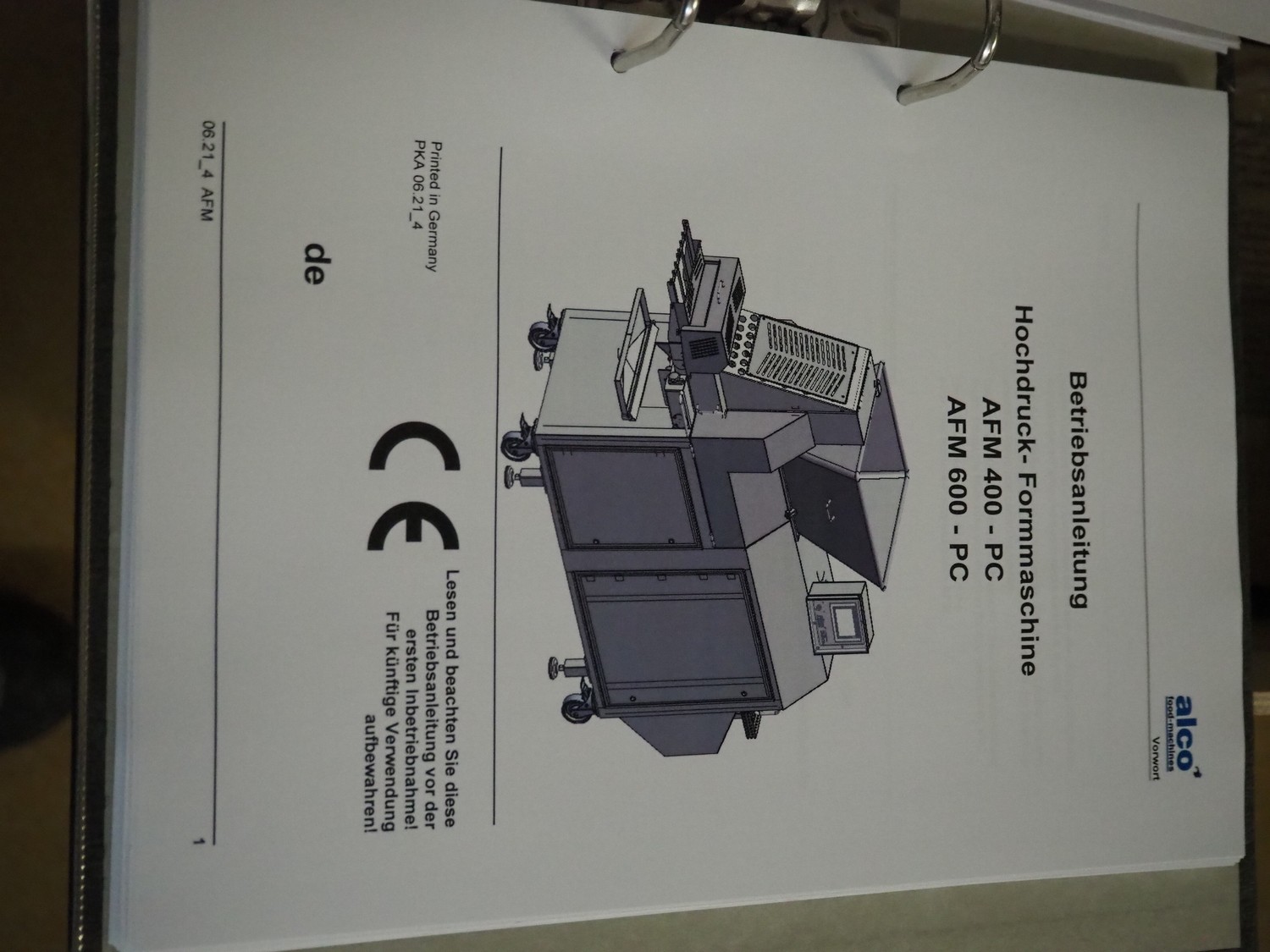 Alco Food-Machines GmbH&Co.KG mobile forming machine, type: AFM 400-PC, serial number: 03304216, year of construction: 2005, 400 V, 17 kW, plastic mesh outfeed belt, belt width: 400 mm, dimensions dye: Ø 40 mm, total dimensions: 2600 mm x 850 mm x 1950 mm. With tool trolley with forming plates, dimensions: 1300 mm x 600 mm x 2100 mm.