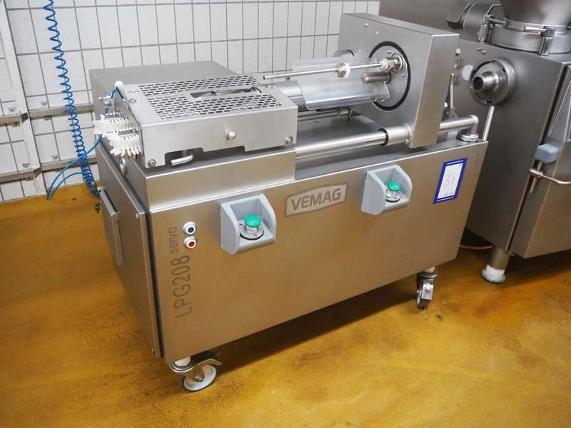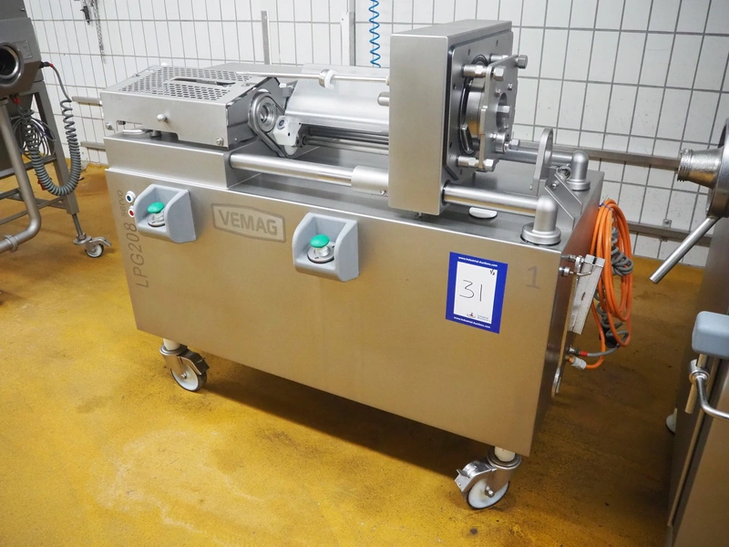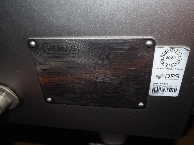 Vemag mobile high-speed length portioning machine, model: LPG 208, number: 2080411, year of construction: 2014, 220 - 240 V / 400 - 460 V / 575 V, 3 Ph, 50/60 Hz, 8 A, 5.5 kW, weight: 637 kg, dimensions: 1700 mm x 900 mm x 1350 mm. Including crate with parts.