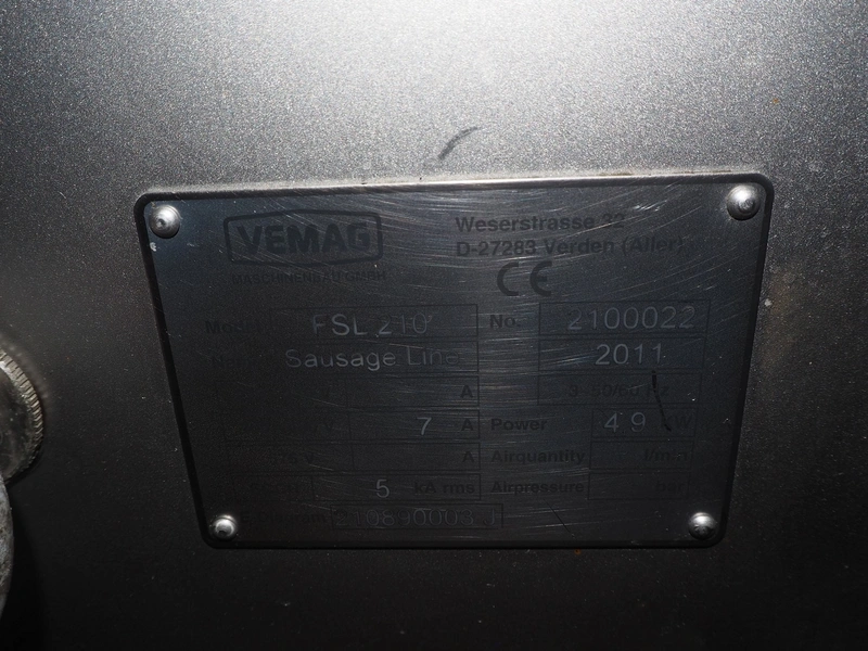Vemag mobile flexible sausage line, model: FSL 210, number: 2100022, year of construction: 2011, 220-240 V / 400 - 460 V / 575 V, 3 Ph, 50/60 Hz, 4.9 kW, total dimensions: 1900 mm x 850 mm x 1300 mm. With crate with parts.