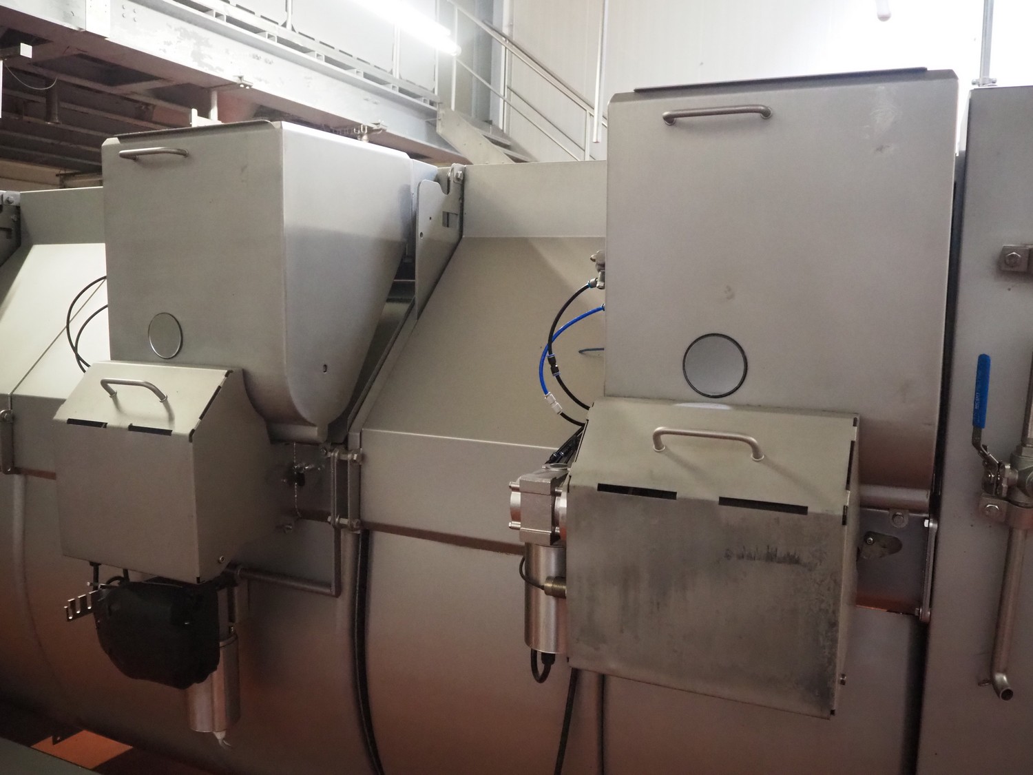 Stork PMT In-line marinating system Valuedrum, model: TB1111, type: 3857819, serial number: 10071881, year of construction: 2009, plastic belt, belt width: 400 mm, total dimensions: 4400 mm x 2250 mm x 2350 mm.