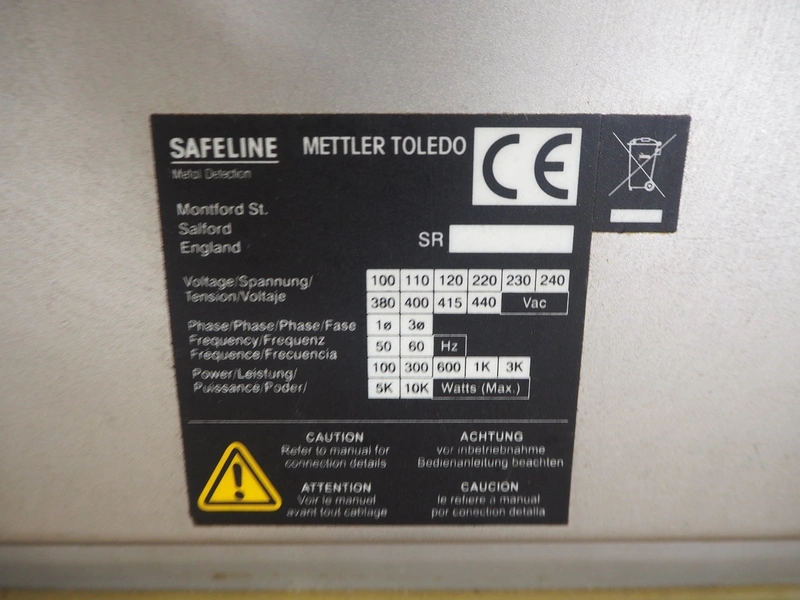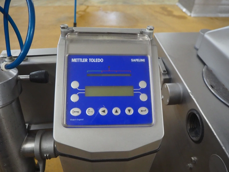 Mettler Toledo Safeline mobile pipeline metal detector with rejecter, clearance: 100 mm, total dimensions: 980 mm x 600 mm x 1600 mm. Missing pipe.