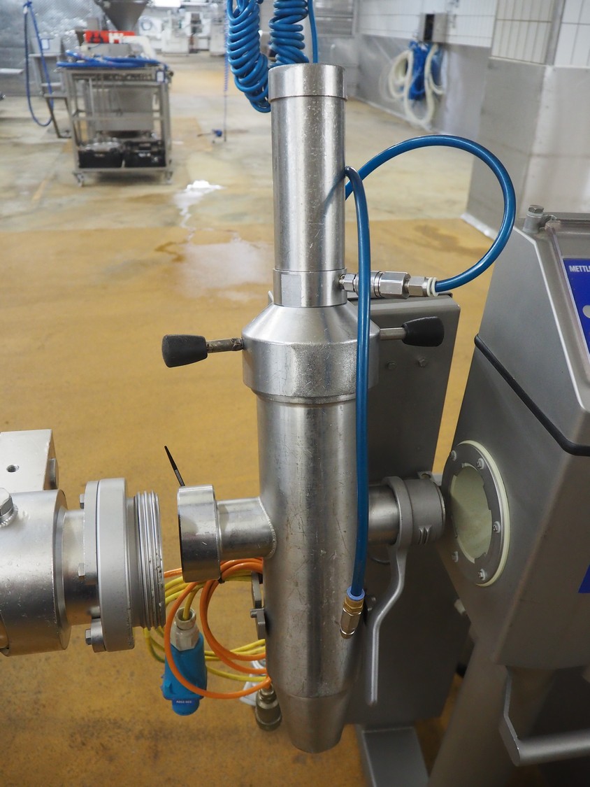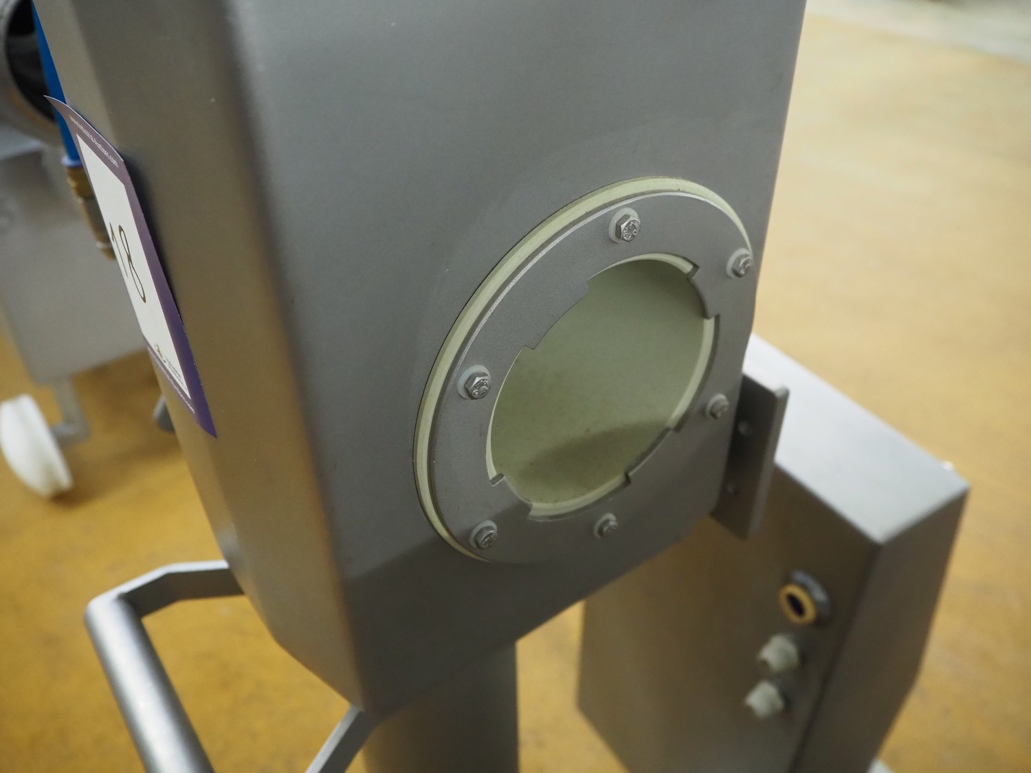 Mettler Toledo Safeline mobile pipeline metal detector with rejecter, clearance: 100 mm, total dimensions: 980 mm x 600 mm x 1600 mm. Missing pipe.
