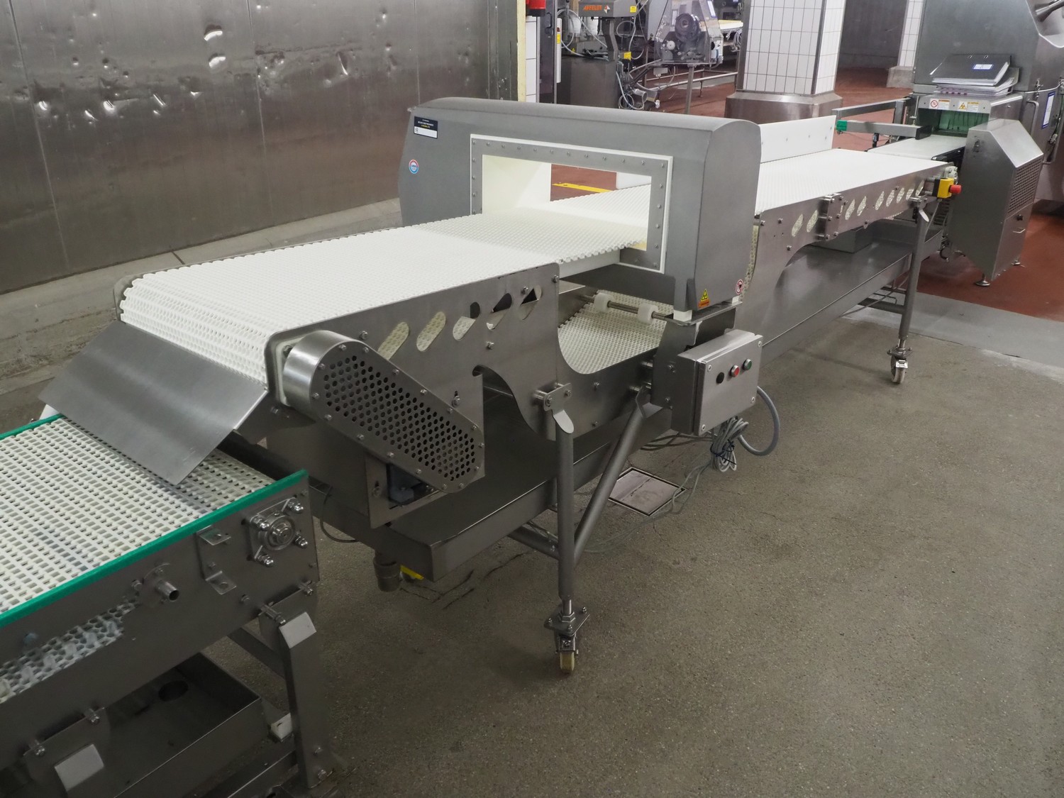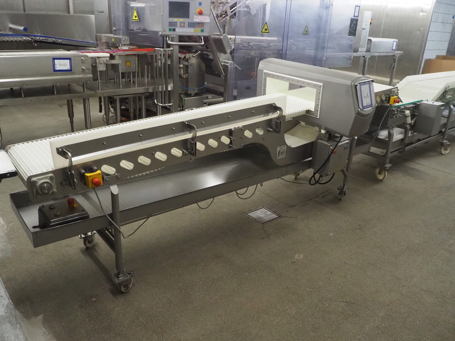 Quander / Mettler Toledo mobile metal detector, type: Modulband BB500, number: 2017180, 230/400 V, 50 Hz, 2.45/1.41, 0.55 kW, plastic mesh belt, belt width: 510 mm, clearance: 550 mm x 150 mm, total dimensions: 3700 mm x 1180 mm x 1330 mm.