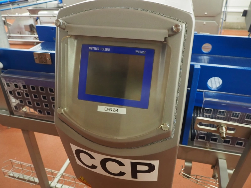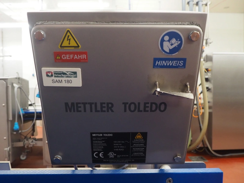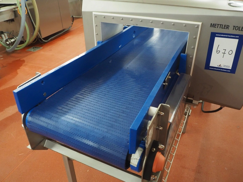 Kersting / Mettler Toledo metal detector, type: FB Metallcheck, number: 40080, year of construction: 2015, 400 V, 50 Hz, plastic belt, belt width: 430 mm, clearance: 500 mm x 210 mm, total dimensions: 1800 mm x 1100 mm x 1530 mm.