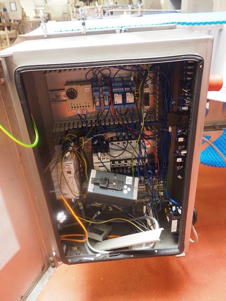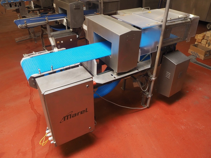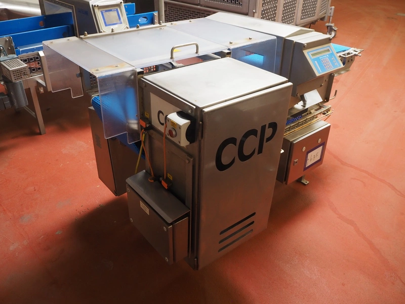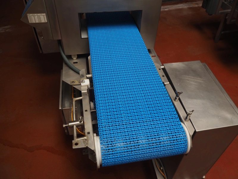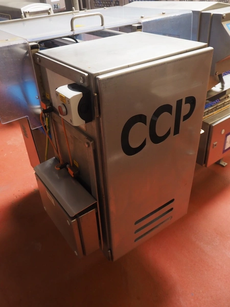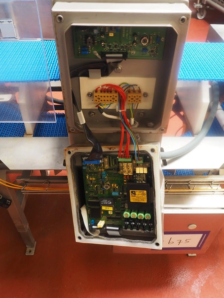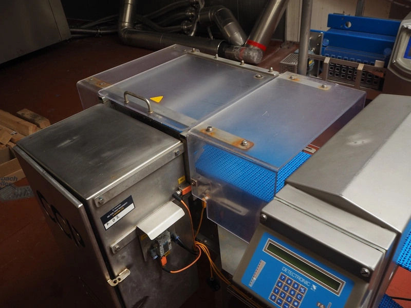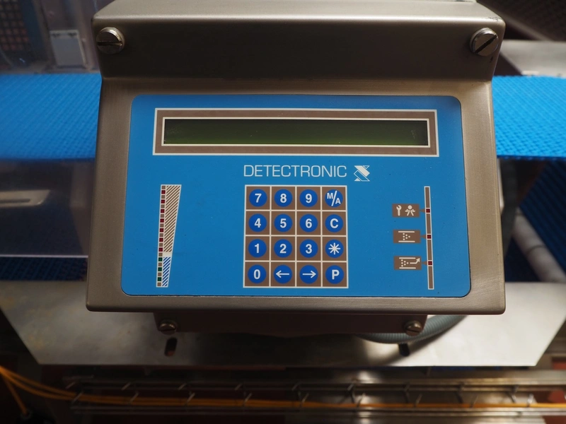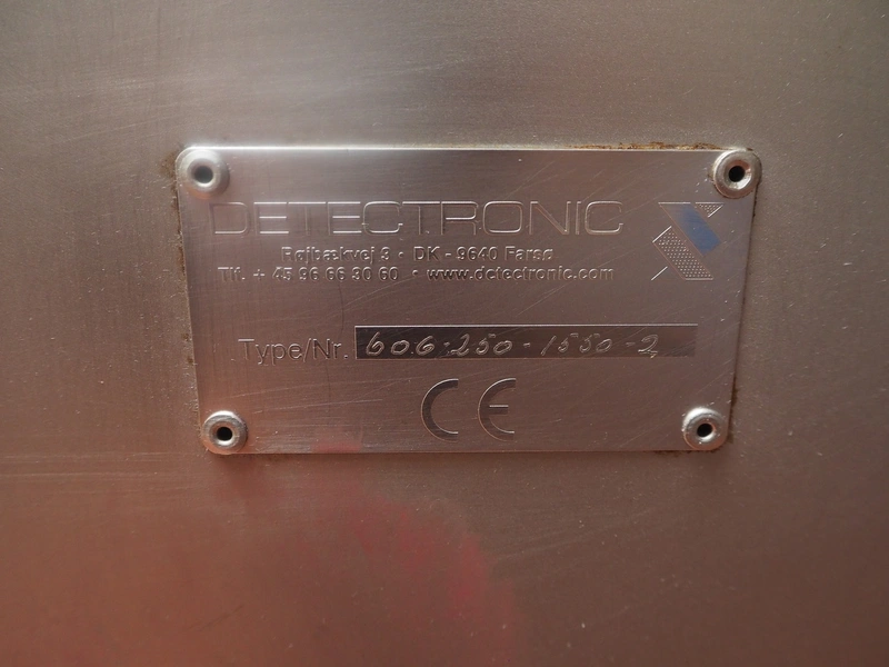 Detectronic metal detector with rejector, type: 606-250-1550-2, plastic mesh belt, belt width: 300 mm, clearance: 350 mm x 115 mm, total dimensions: 1940 mm x 1000 mm x 2350 mm.