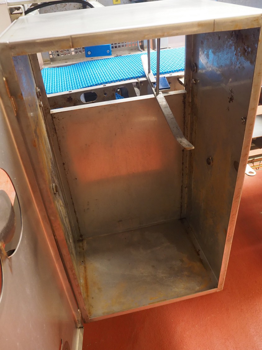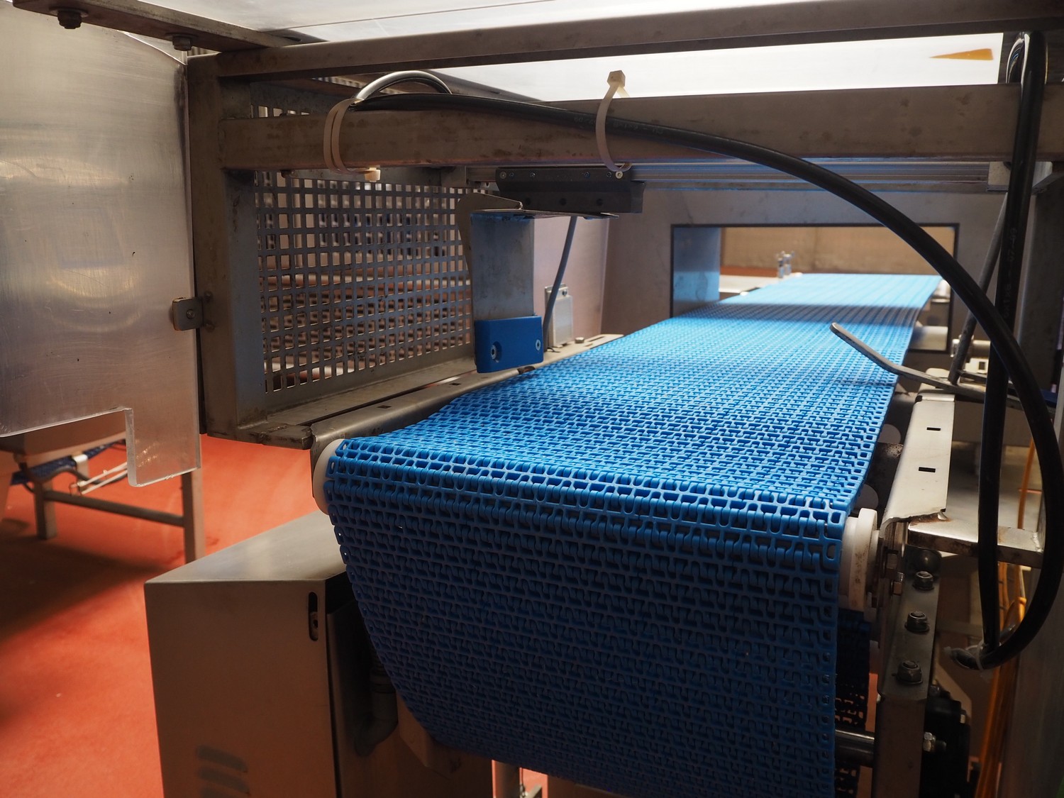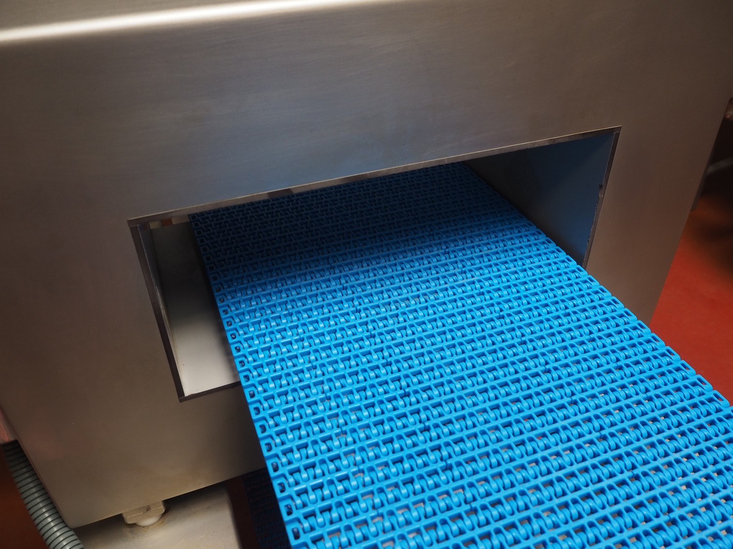 Detectronic metal detector with rejector, type: 606-250-1550-2, plastic mesh belt, belt width: 300 mm, clearance: 350 mm x 115 mm, total dimensions: 1940 mm x 1000 mm x 2350 mm.