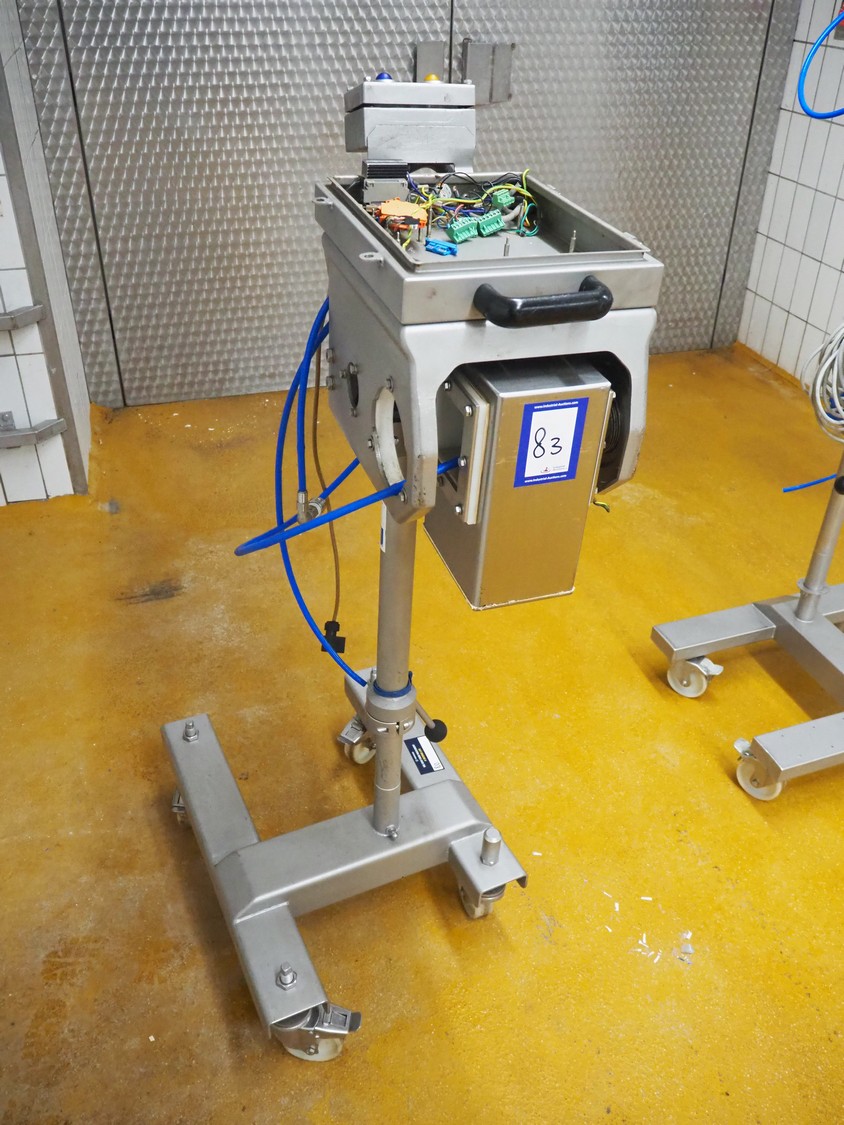 Loma Systems mobile pipeline metal detector, serial number: EPL080263-07736D, year of construction: 2008, 230 V, 1 Ph, 50 Hz, 1.2 A, diameter pipe: 50 mm, total dimensions: 700 mm x 500 mm x 1350 mm. Incomplete, technical condition unknown.