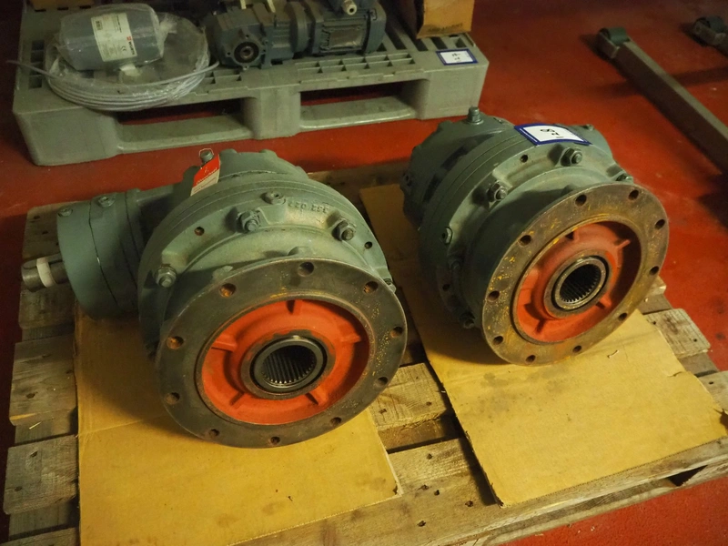 Pallet with 2 Brevini Riduttori right angle reductors for Wolfking double shaft paddle mixers, type output: EC3090/FE, input: 48.82, year of construction: 2003, dimensions: (2x) 600 mm x 450 mm x 400 mm.