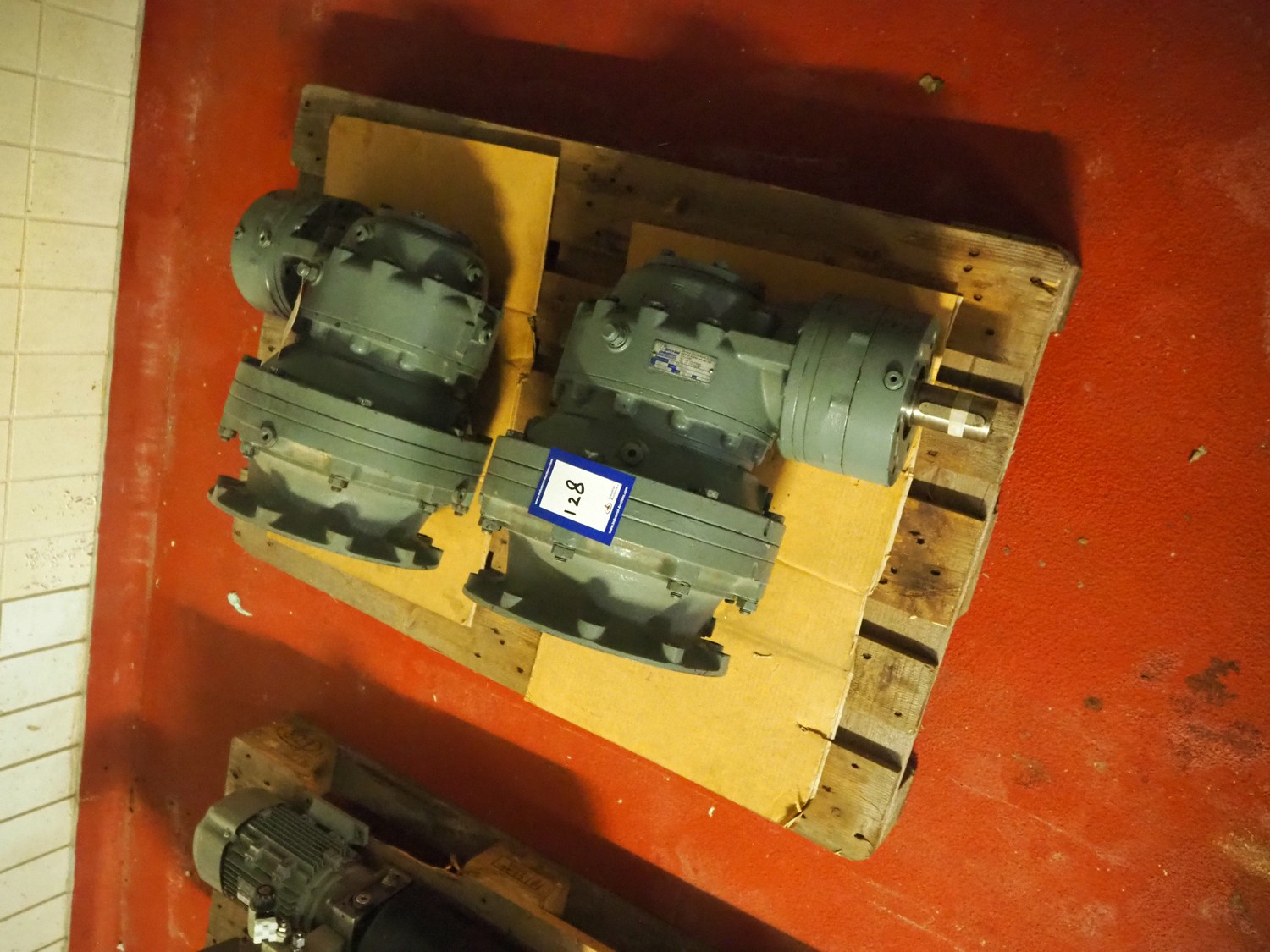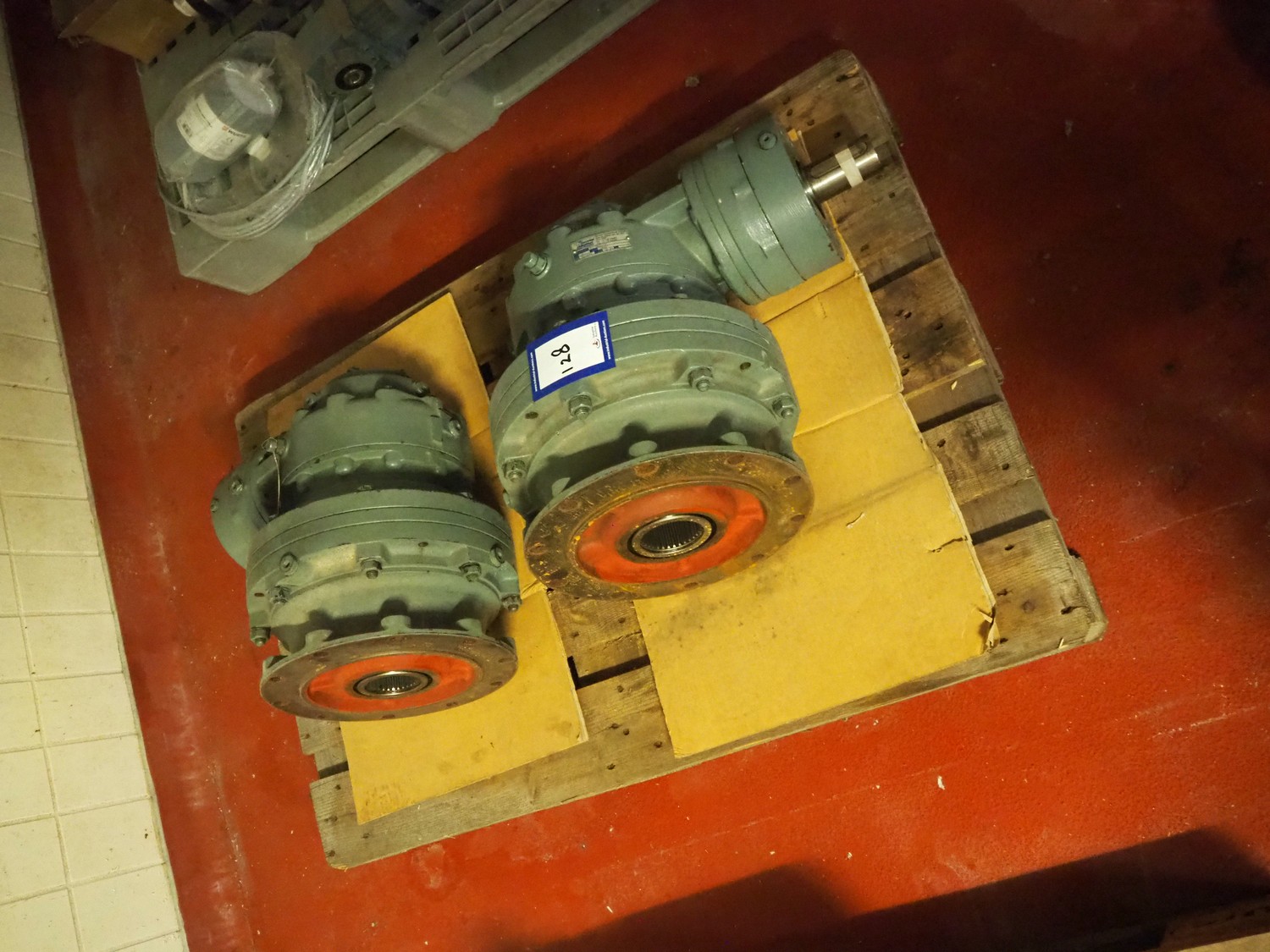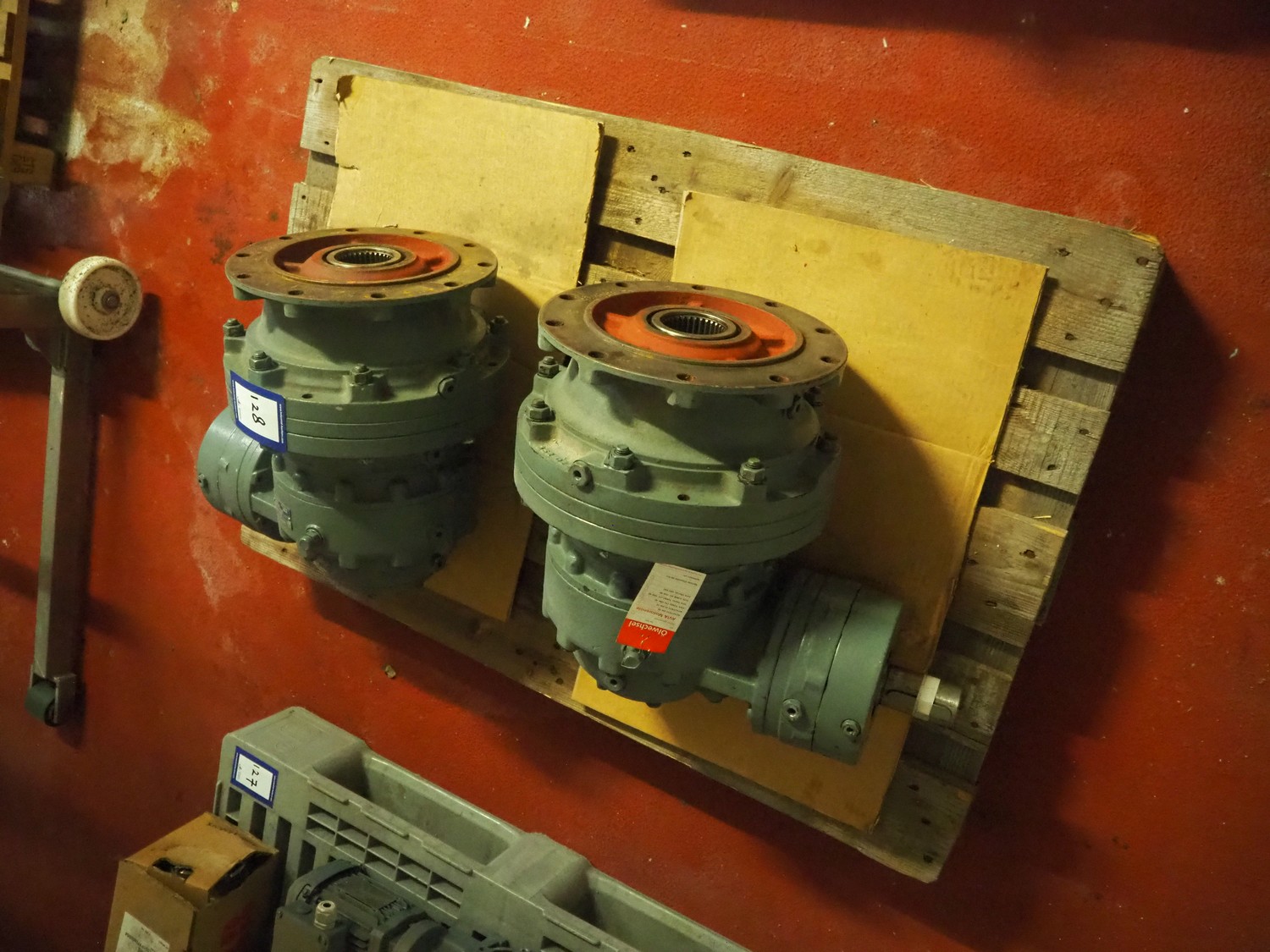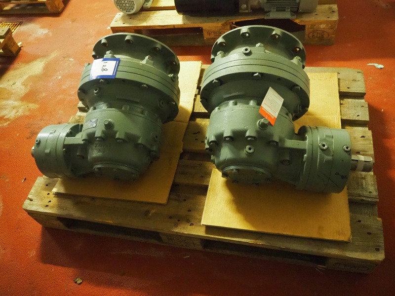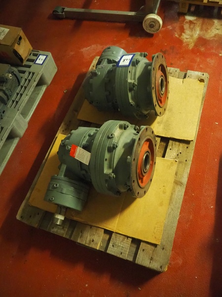 Pallet with 2 Brevini Riduttori right angle reductors for Wolfking double shaft paddle mixers, type output: EC3090/FE, input: 48.82, year of construction: 2003, dimensions: (2x) 600 mm x 450 mm x 400 mm.