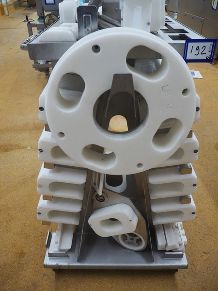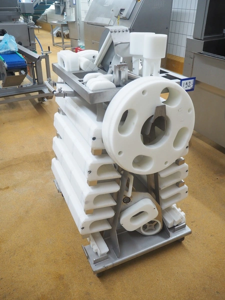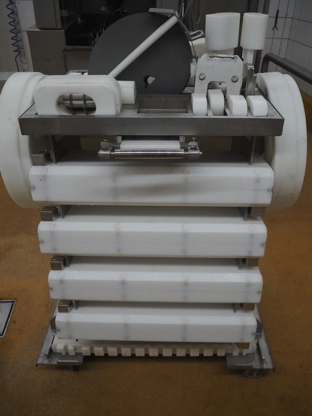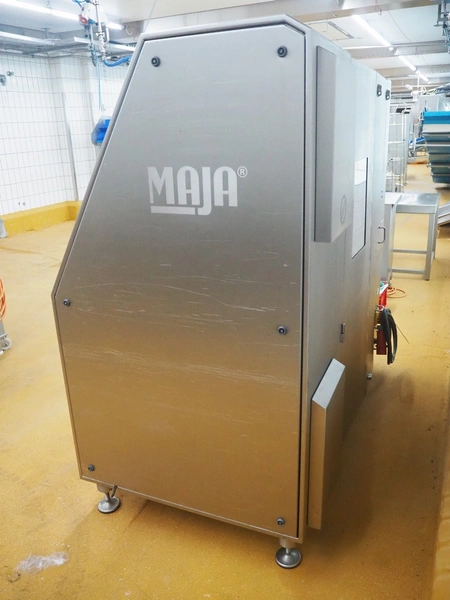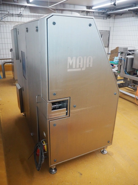 Maja portioning machine, type: FP 100, serial number: 45585, year of construction: 2005, 400 V, 50 Hz, dimensions: 1900 mm x 1000 mm x 1880 mm, including tool trolley, dimensions: 1000 mm x 800 mm x 1450 mm. Incomplete.