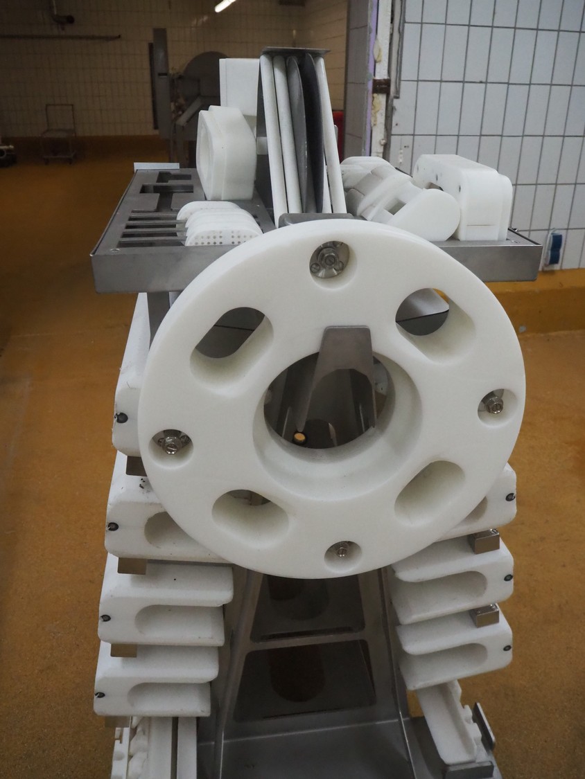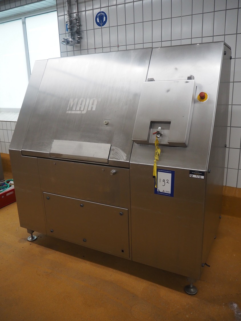 Maja portioning machine, type: FP 100, serial number: 45585, year of construction: 2005, 400 V, 50 Hz, dimensions: 1900 mm x 1000 mm x 1880 mm, including tool trolley, dimensions: 1000 mm x 800 mm x 1450 mm. Incomplete.