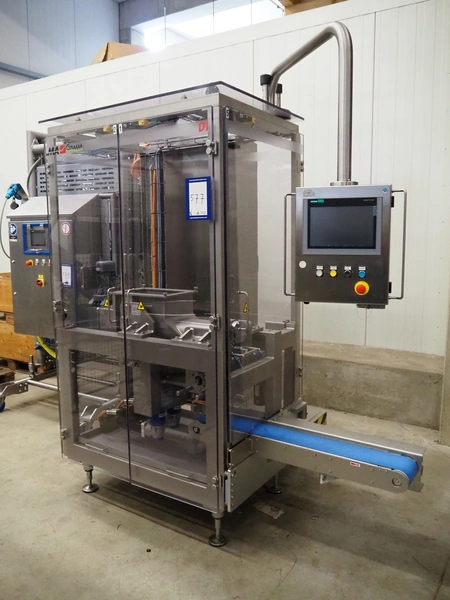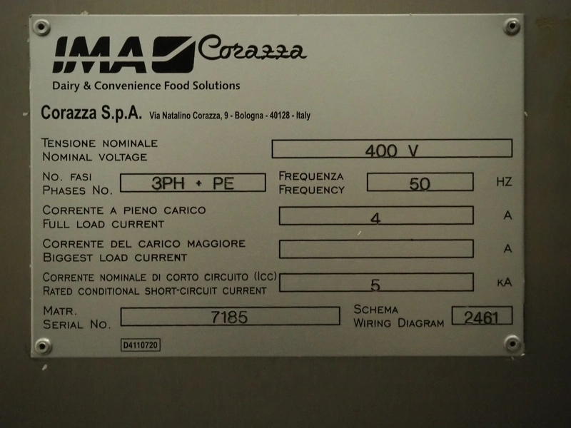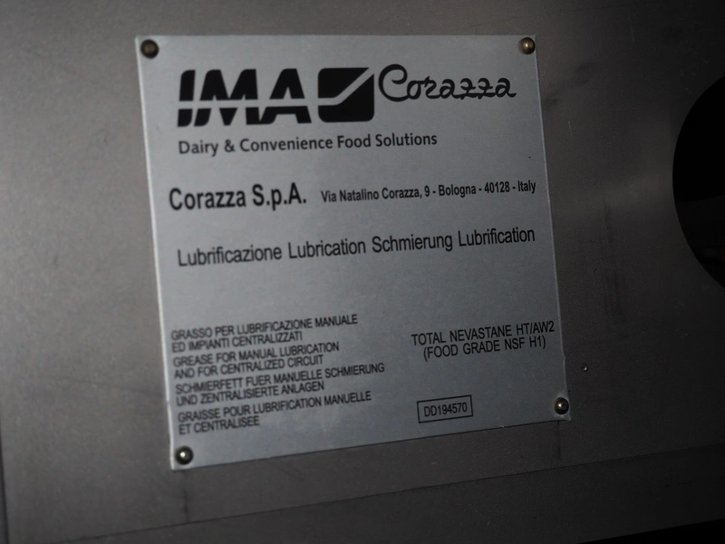 IMA Corraza SPA bench press, machine type: Bench press, serial number: 7185, year of construction: 2014, dimensions input: 340 mm x 200 mm, plastic belt, belt width: 150 mm, total dimensions: 2000 mm x 1450 mm x 2900 mm.