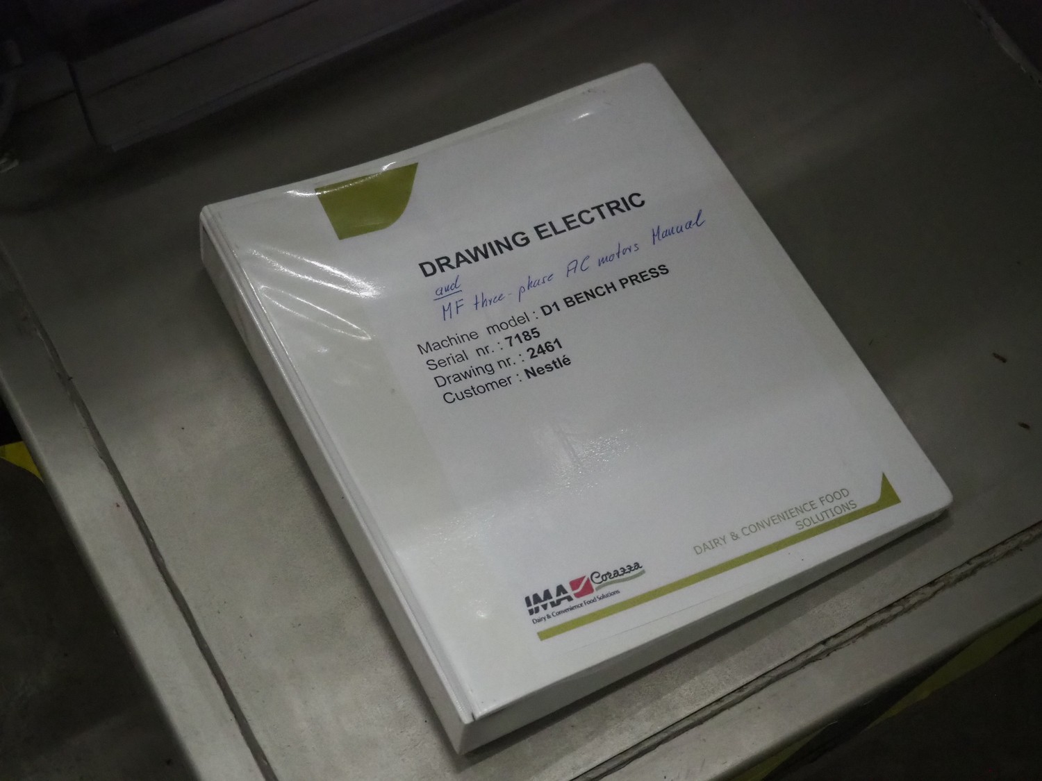 IMA Corraza SPA bench press, machine type: Bench press, serial number: 7185, year of construction: 2014, dimensions input: 340 mm x 200 mm, plastic belt, belt width: 150 mm, total dimensions: 2000 mm x 1450 mm x 2900 mm.