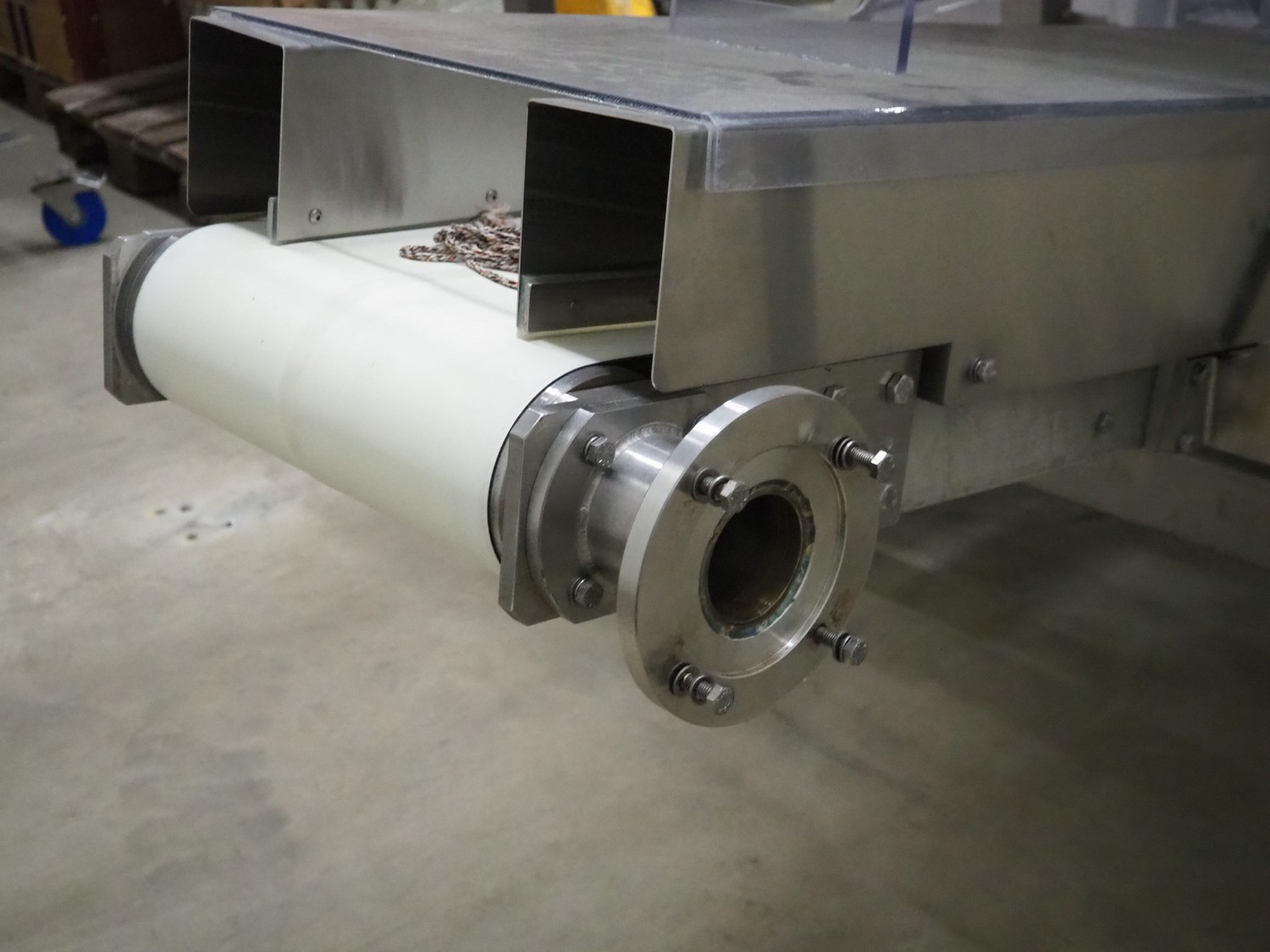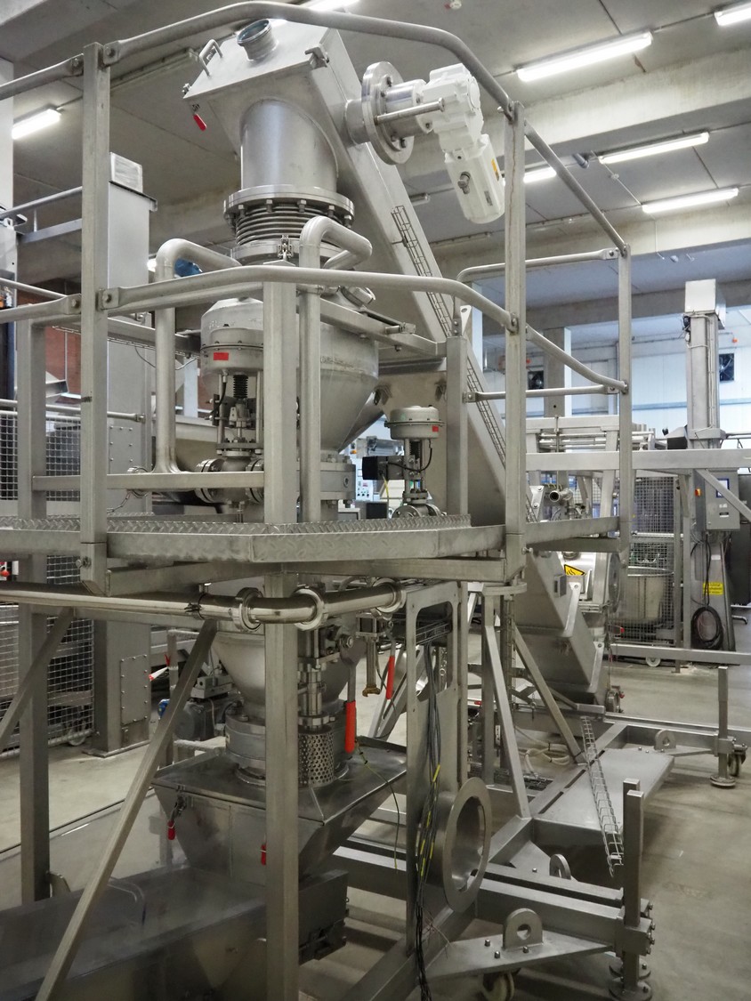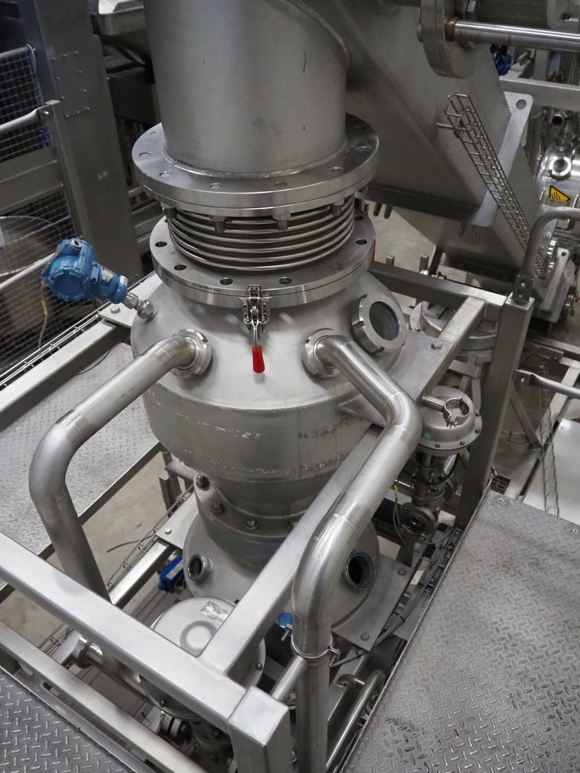 A.Meili SA processing-installation, model: Scaphandre-400, fabrication number: 9794, year of construction: 2007, -1 / 2 bar, maximum working temperature: 110˚C, volume: 120 liter, jacket: 10 liter, Kraft Apparatebau GmbH valve, type: S09-44, serial number: 2101248, year of construction: 2010, dimensions infeed station with drum: 2800 mm x 2400 mm x 2350 mm, elevating belt with dividers, belt width: 240 mm, divider height: 40 mm, elevating height: 2600 mm, total dimensions elevating belt: 2400 mm x 2200 mm x 3200 mm and processing installation, dimensions: 2600 mm x 2170 mm x 2950 mm. Including 3 pallets with valves, parts and extra belt.