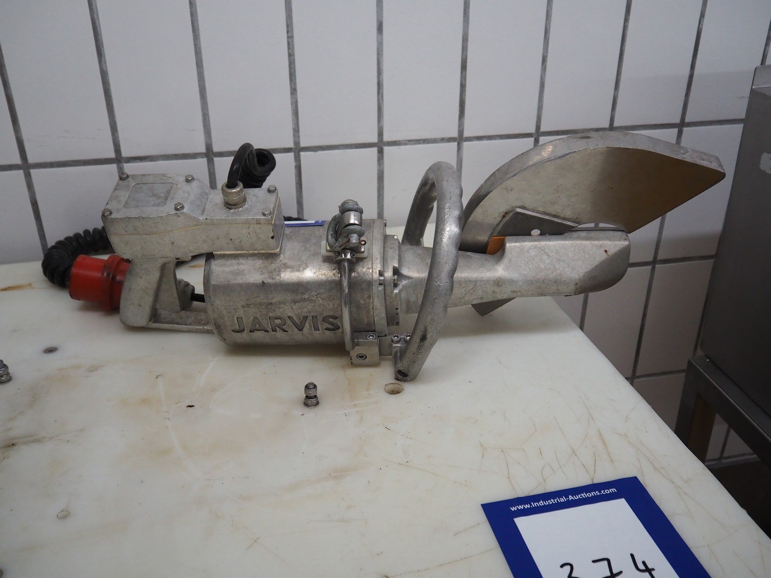 Jarvis breaking saw, model: SEC280-4, serial number: 95050, 380 V, 50 Hz, 1700 W, 2850 RPM, dimensions: 680 mm x 250 mm x 250 mm. Missing saw.