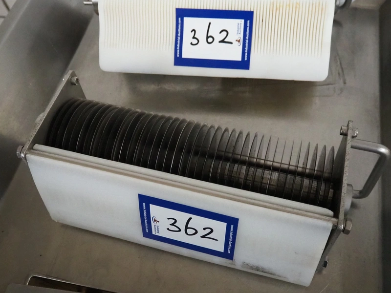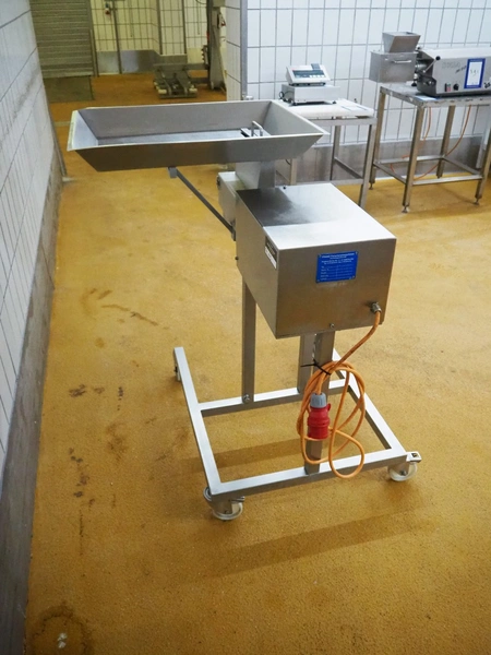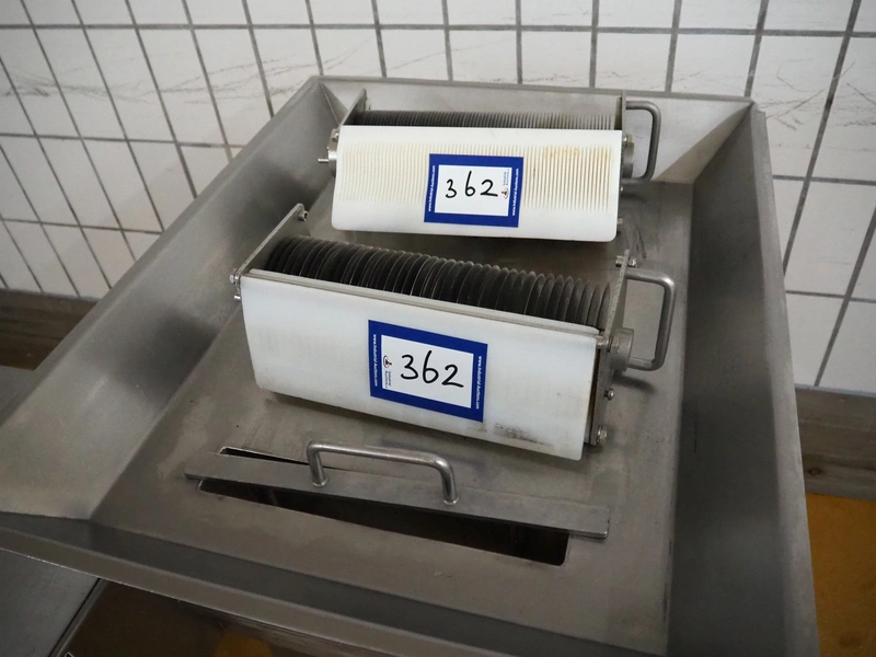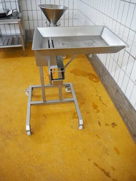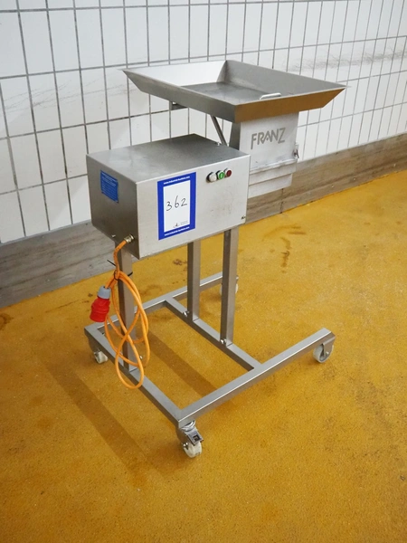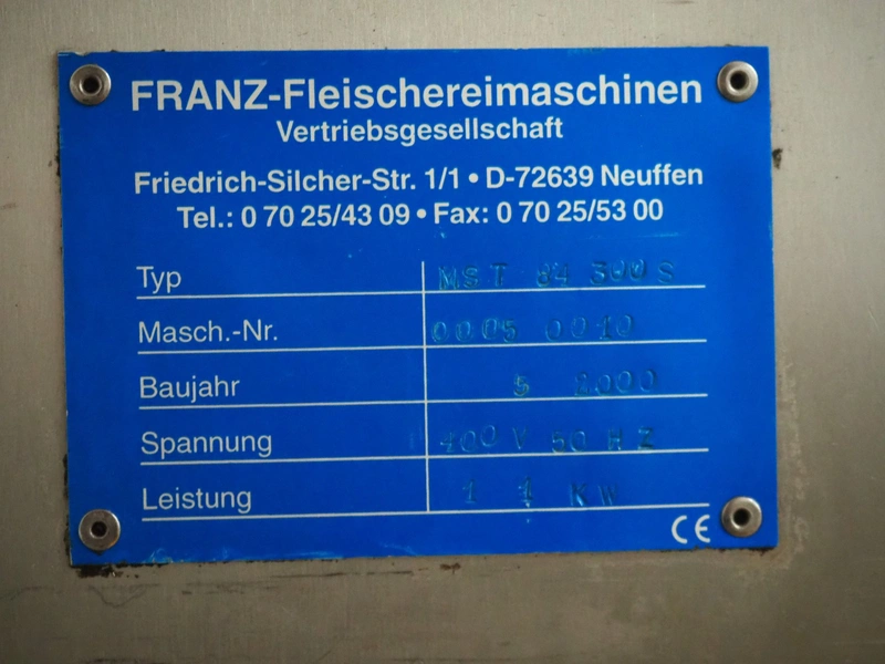 Franz-Fleischereimaschinen mobile strip cutter, type: MST 84 300S, machine number: 0005 0010, year of construction: 5 2000, 400 V, 50 Hz, 1.1 kW, working width: 290 mm, total dimensions: 1000 mm x 1000 mm x 1130 mm. Including 2 knife sets, (1x) 37 knives, distance between knives: 9 mm, (1x) 73 knives, distance between knives: 4 mm.