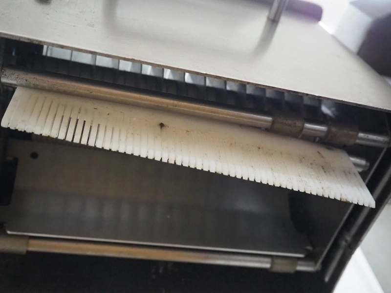 Solia strip cutter, type: M30, machine number: 66/00 0023, 400 V, 3 Ph, 50 Hz, 3.3/3.9 A, 1.4/1.8 kW, 14 knives, distance between knives: 10 mm, total dimensions: 950 mm x 320 mm x 420 mm.