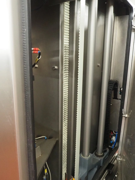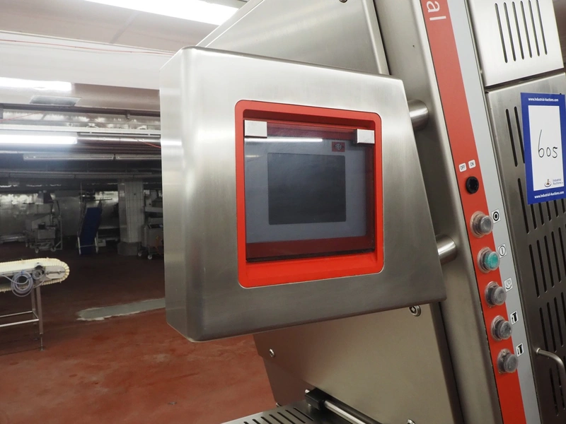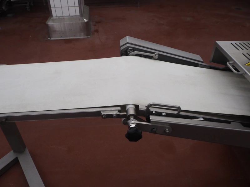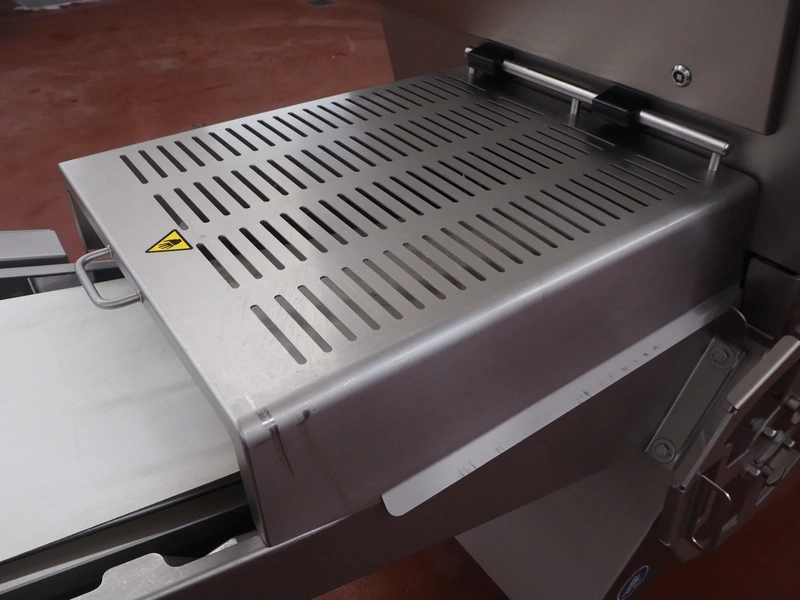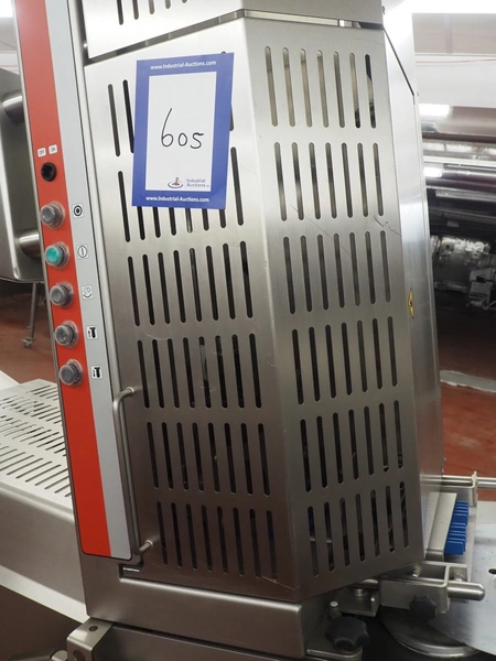 Treif Maschinenbau GmbH slicer, model: DIVIDER ORBITAL, machine number: 055005.161076.114311, year of construction: 2012, 190-240 V, 3 Ph, 50/60 Hz, 9 A, 4.8 kW, weight: 820 kg, plastic outfeed belt, belt width: 410 mm, total dimensions: 3800 mm x 1100 mm x 2180 mm.