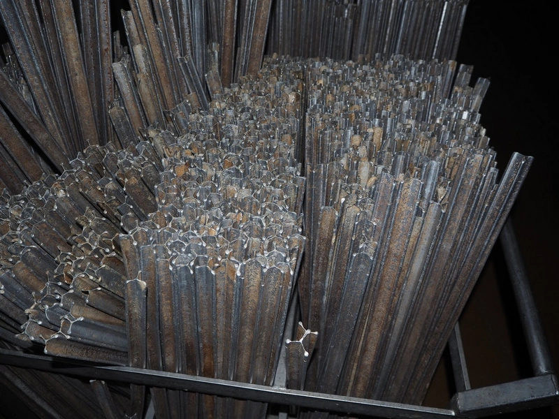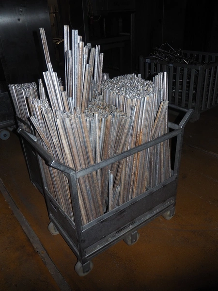 2 s/s trolleys with large amount of Y-shaped smoke sticks, length each smoke stick: 900 mm, total dimensions: (2x) 1000 mm x 500 mm x 1100 mm.