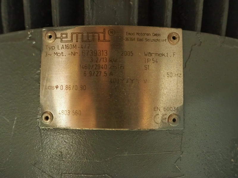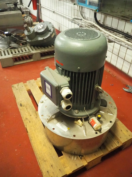 EMOD Motoren GmbH motor with ventilator for Schrӧter smoking chamber, type: LA160M-4/2, motor number: 6739313, year of construction: 2005, 3.2 / 13 kW, 1460 / 2940 rates per minutes, diameter: 700 mm, height: 850 mm.