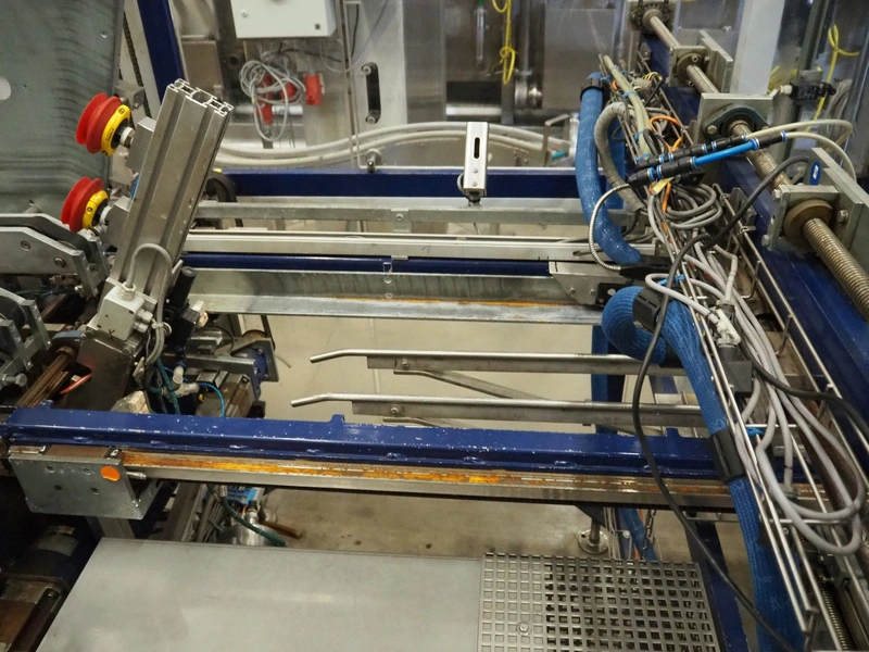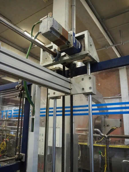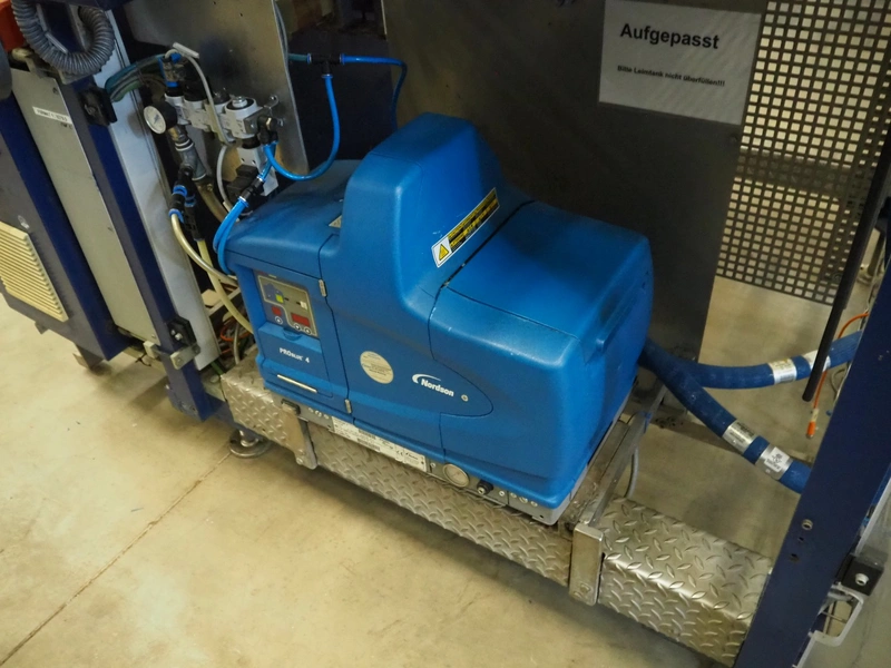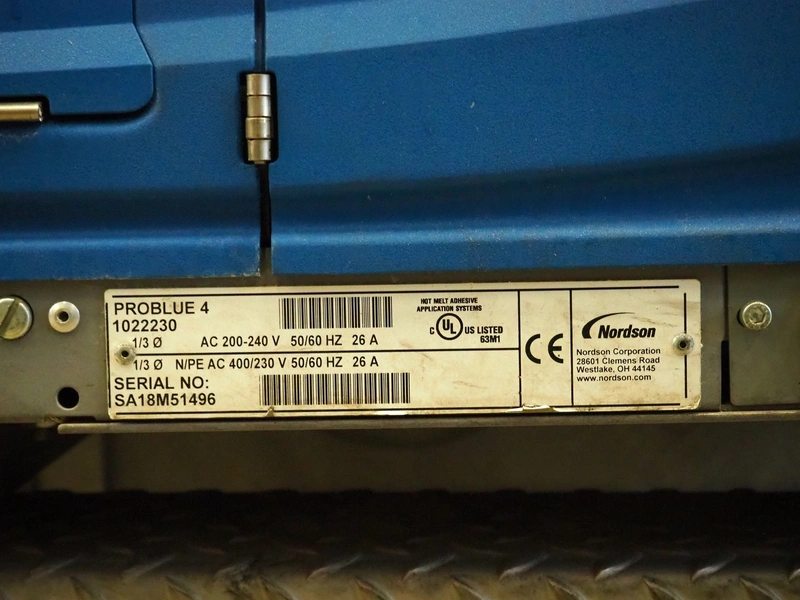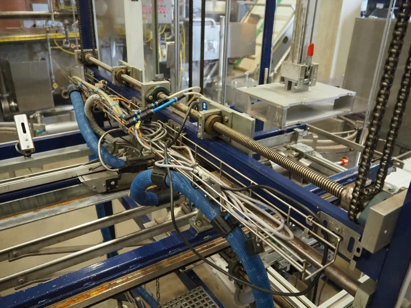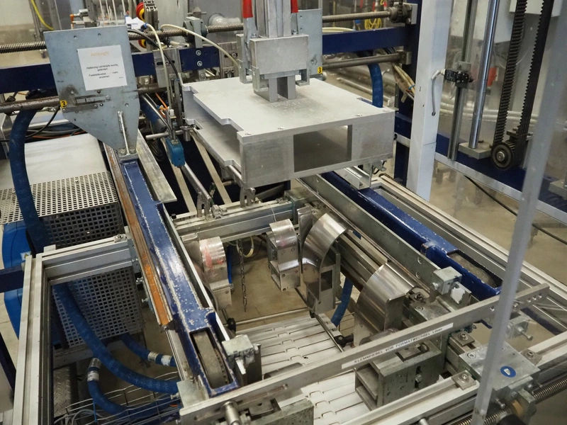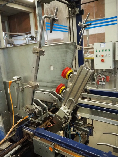 ETT carton erecter, Nordson glue unit, model: Problue 4, plastic belt, belt width: 315 mm, total dimensions: 4600 mm x 1800 mm x 2800 mm.