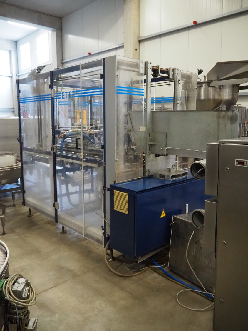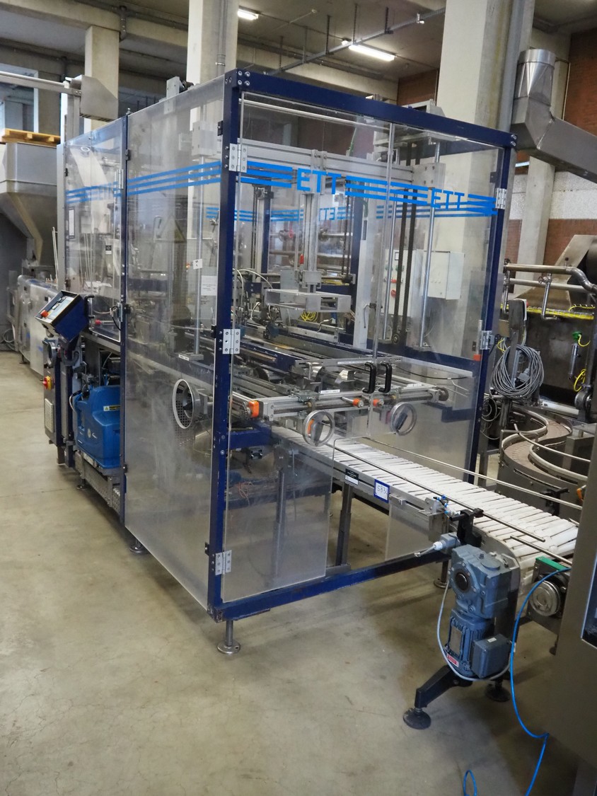 ETT carton erecter, Nordson glue unit, model: Problue 4, plastic belt, belt width: 315 mm, total dimensions: 4600 mm x 1800 mm x 2800 mm.