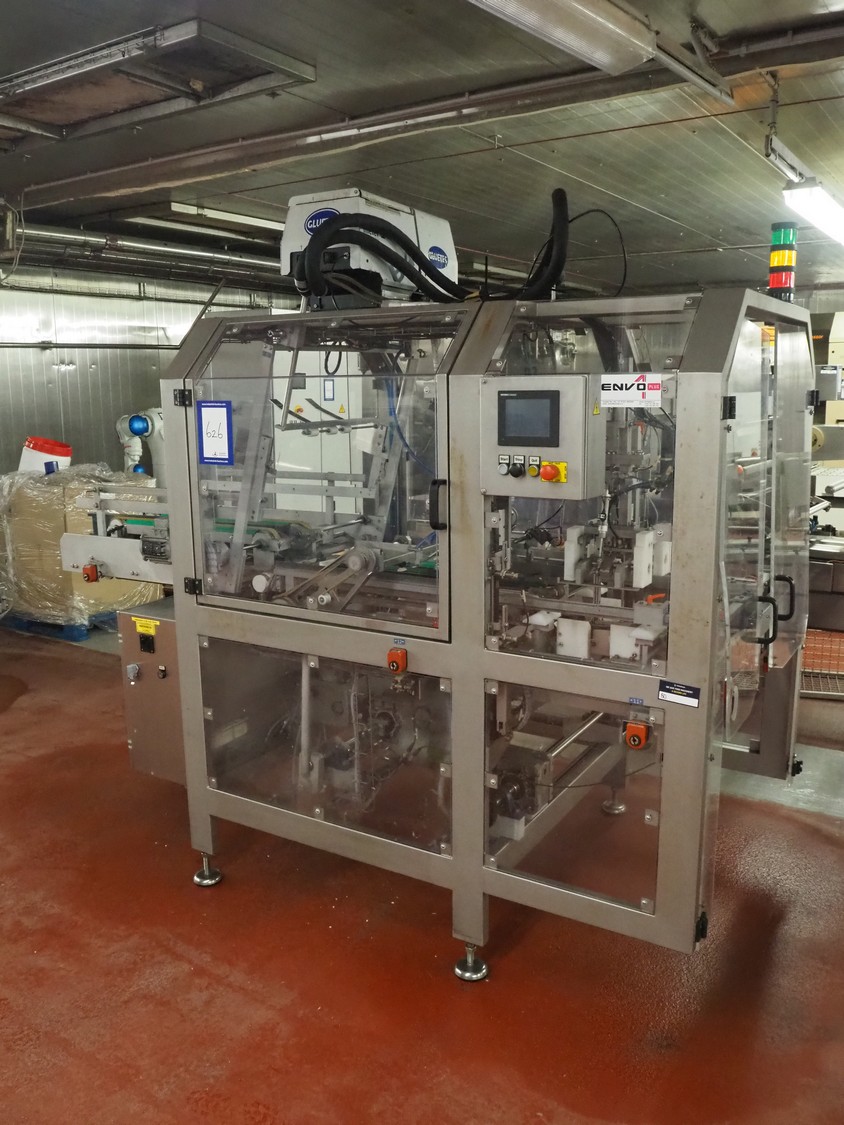 Envo carton erector, type: Aufrichter, serial number: S81, year of construction: 2014, 230/400 V, 580 Hz, 8 kW, belt width: 660 mm and 460 mm, clearance: 260 mm x 260 mm, total dimensions: 2800 mm x 1350 mm x 2400 mm. Including glue unit.
