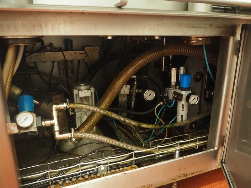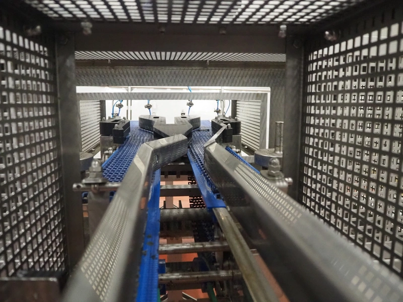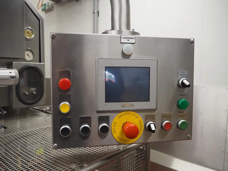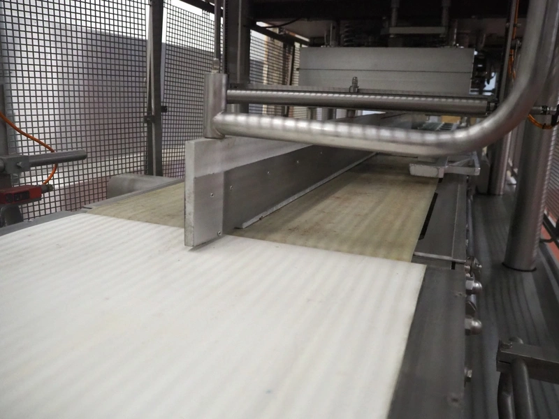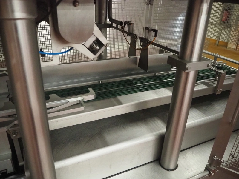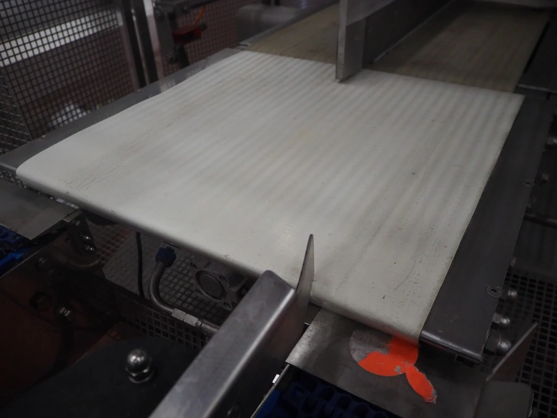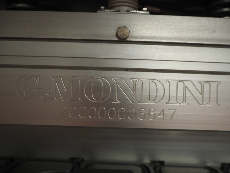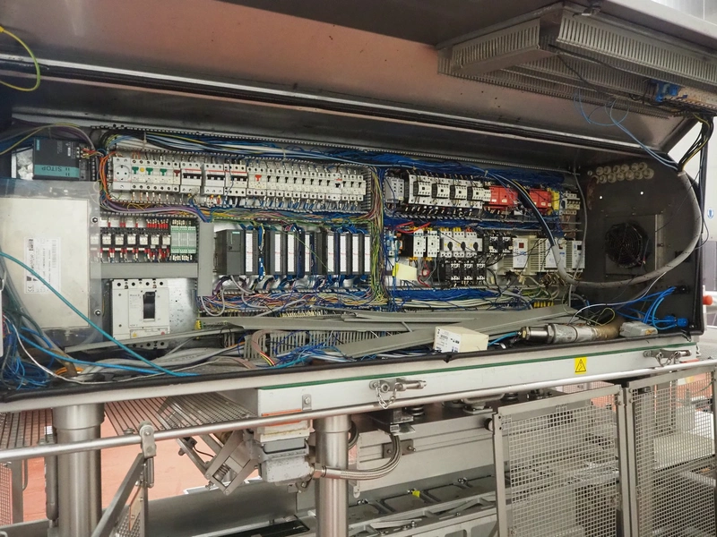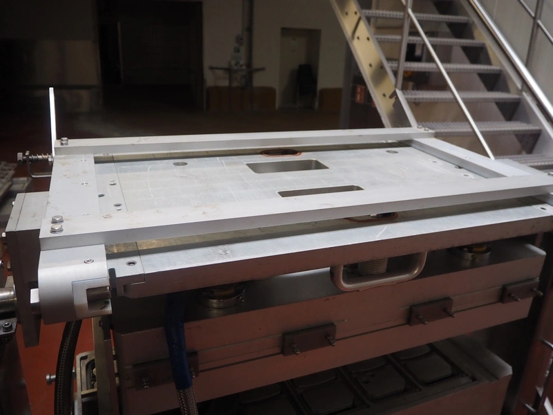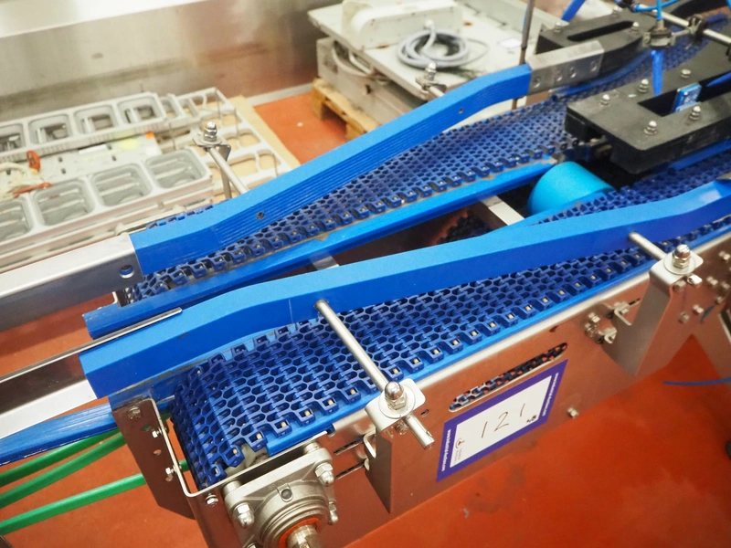 G.Mondini traysealer, model: E 590 VG, serial number: 2455-04/1, year of construction: 10-08-2004, 400 V, 3 Ph, 50 Hz, plastic string conveyor, belt width: 400 mm, dimensions dye: (10x) 200 mm x 150 mm, plastic outfeed belt, belt width: 450 mm, total dimensions: 4000 mm x 1250 mm x 2600 mm. With inliner, plastic mesh belts, belt width: (2x) 120 mm, total dimensions: 1600 mm x 800 mm x 1100 mm, and lane divider: plastic mesh belts, belt width: 120 mm, total dimensions: 2900 mm x 1300 mm x 1250 mm, 3 pallets with forms, dimensions dyes: (12x) 170 mm x 120 mm, (5x) 185 mm x 140 mm, (10x) 190 mm x 150 mm, and trolley with forms, dimensions dye: (12x) 160 mm x 120 mm, total dimensions: 1800 mm x 1000 mm x 1600 mm.
