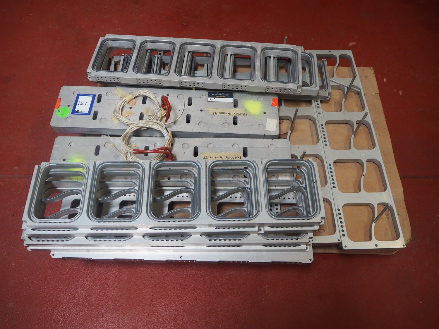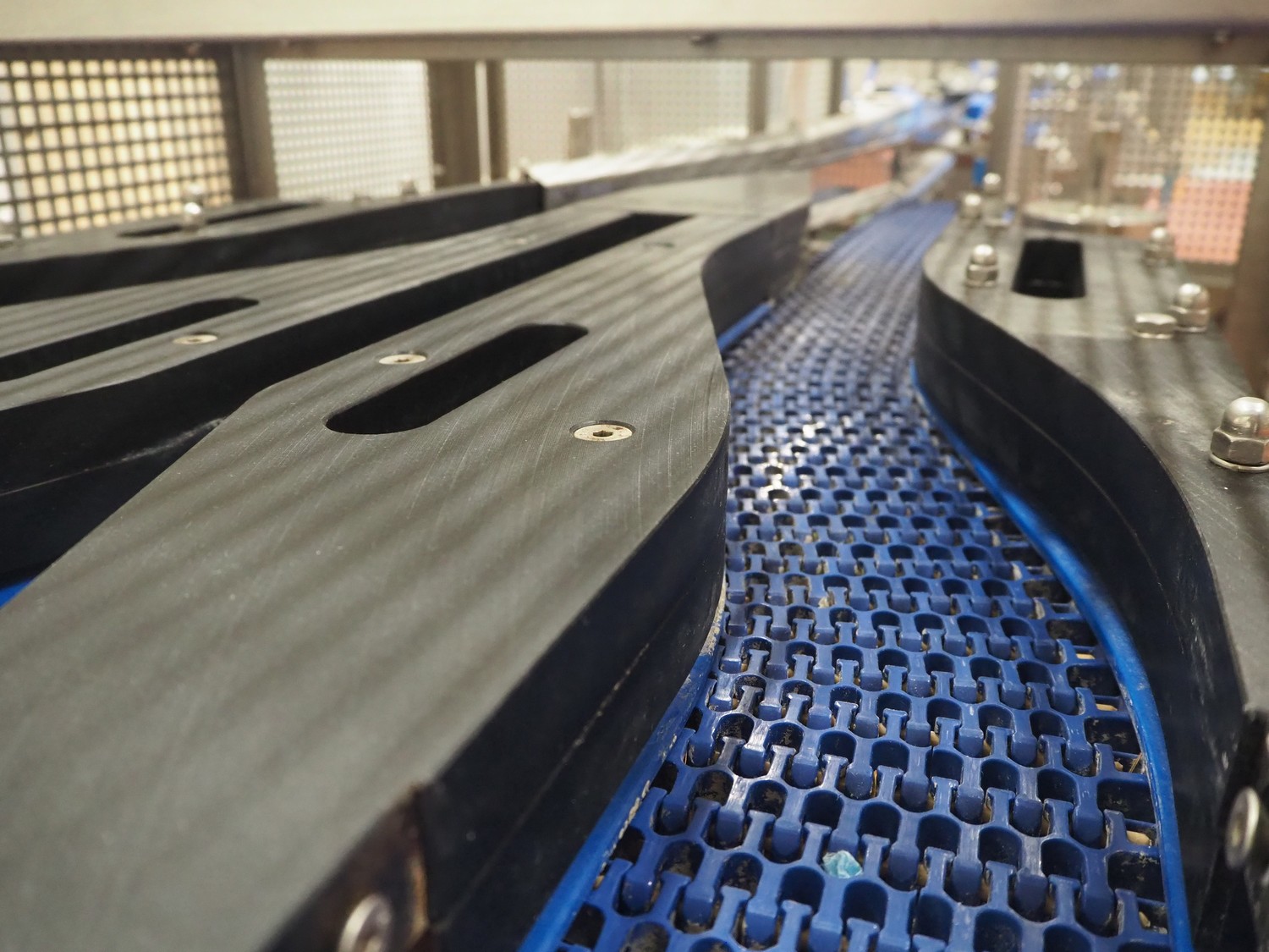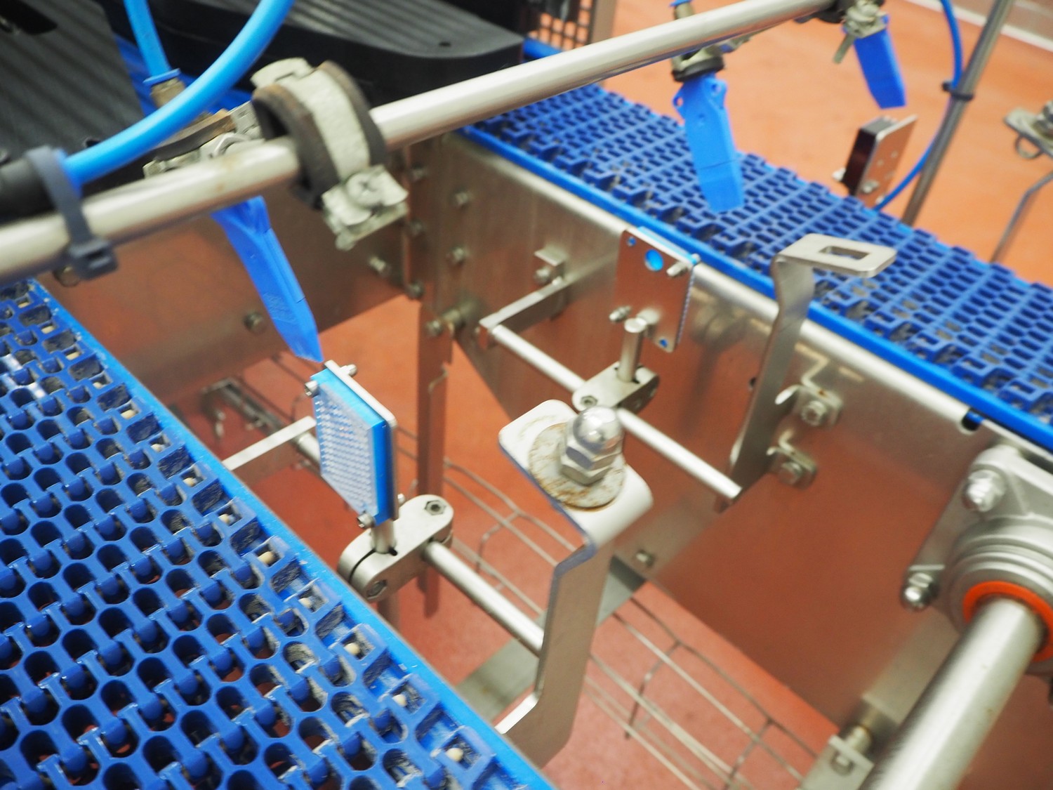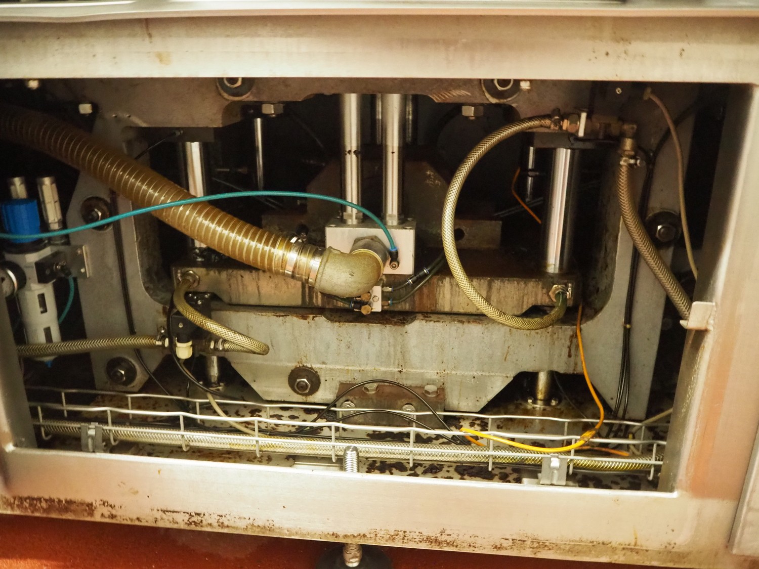 G.Mondini traysealer, model: E 590 VG, serial number: 2455-04/1, year of construction: 10-08-2004, 400 V, 3 Ph, 50 Hz, plastic string conveyor, belt width: 400 mm, dimensions dye: (10x) 200 mm x 150 mm, plastic outfeed belt, belt width: 450 mm, total dimensions: 4000 mm x 1250 mm x 2600 mm. With inliner, plastic mesh belts, belt width: (2x) 120 mm, total dimensions: 1600 mm x 800 mm x 1100 mm, and lane divider: plastic mesh belts, belt width: 120 mm, total dimensions: 2900 mm x 1300 mm x 1250 mm, 3 pallets with forms, dimensions dyes: (12x) 170 mm x 120 mm, (5x) 185 mm x 140 mm, (10x) 190 mm x 150 mm, and trolley with forms, dimensions dye: (12x) 160 mm x 120 mm, total dimensions: 1800 mm x 1000 mm x 1600 mm.