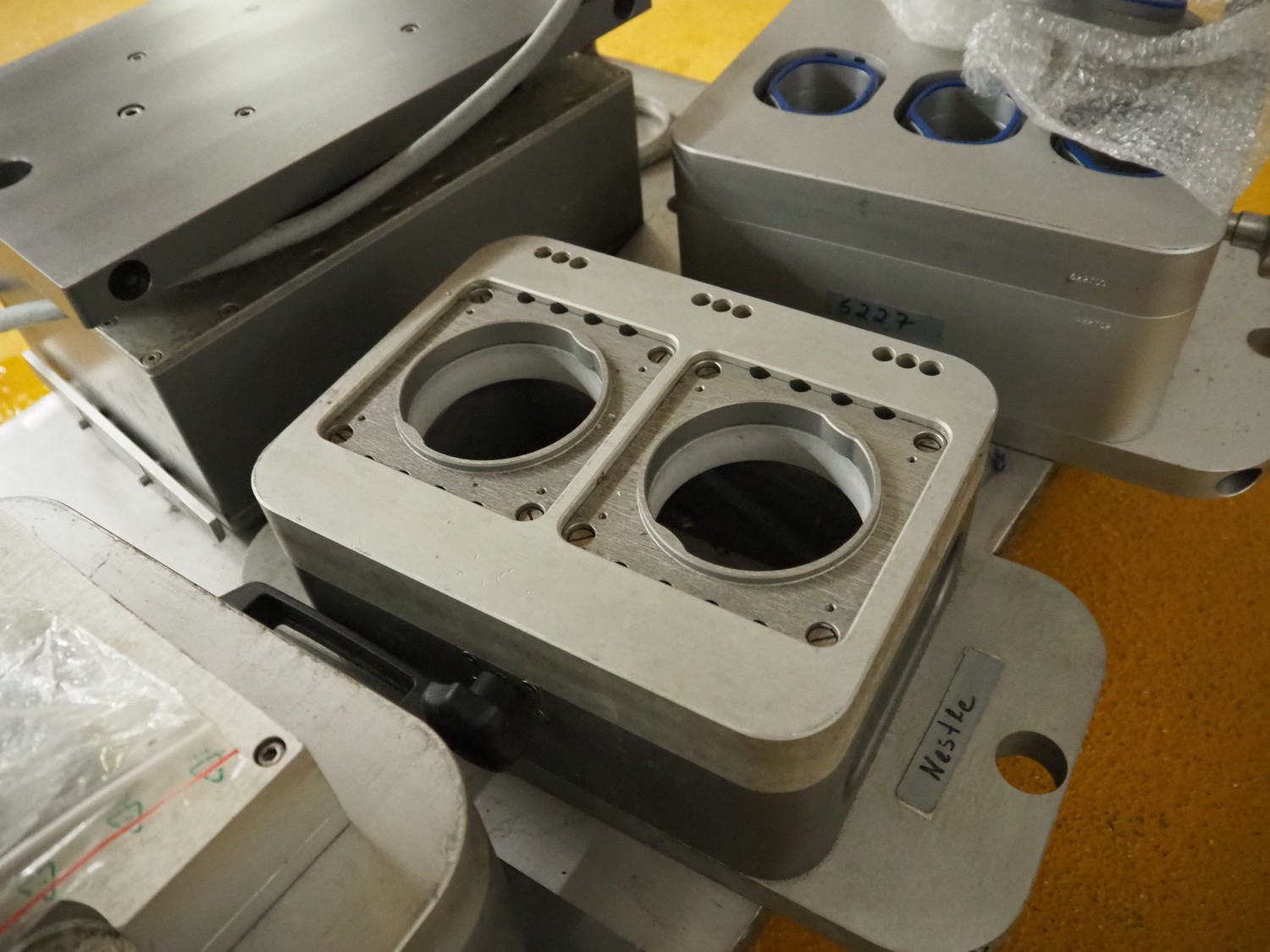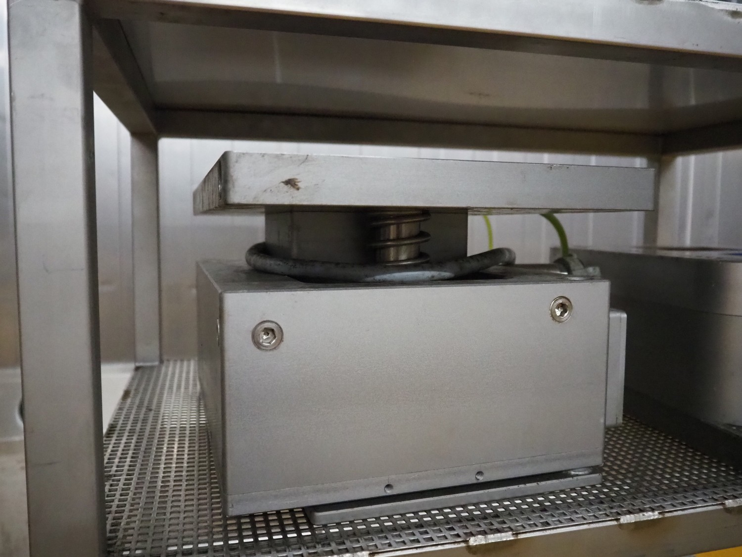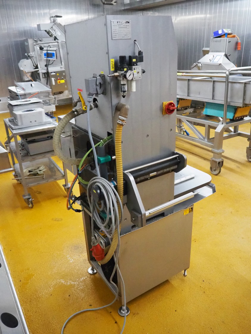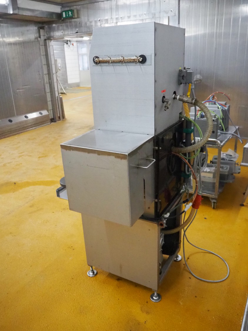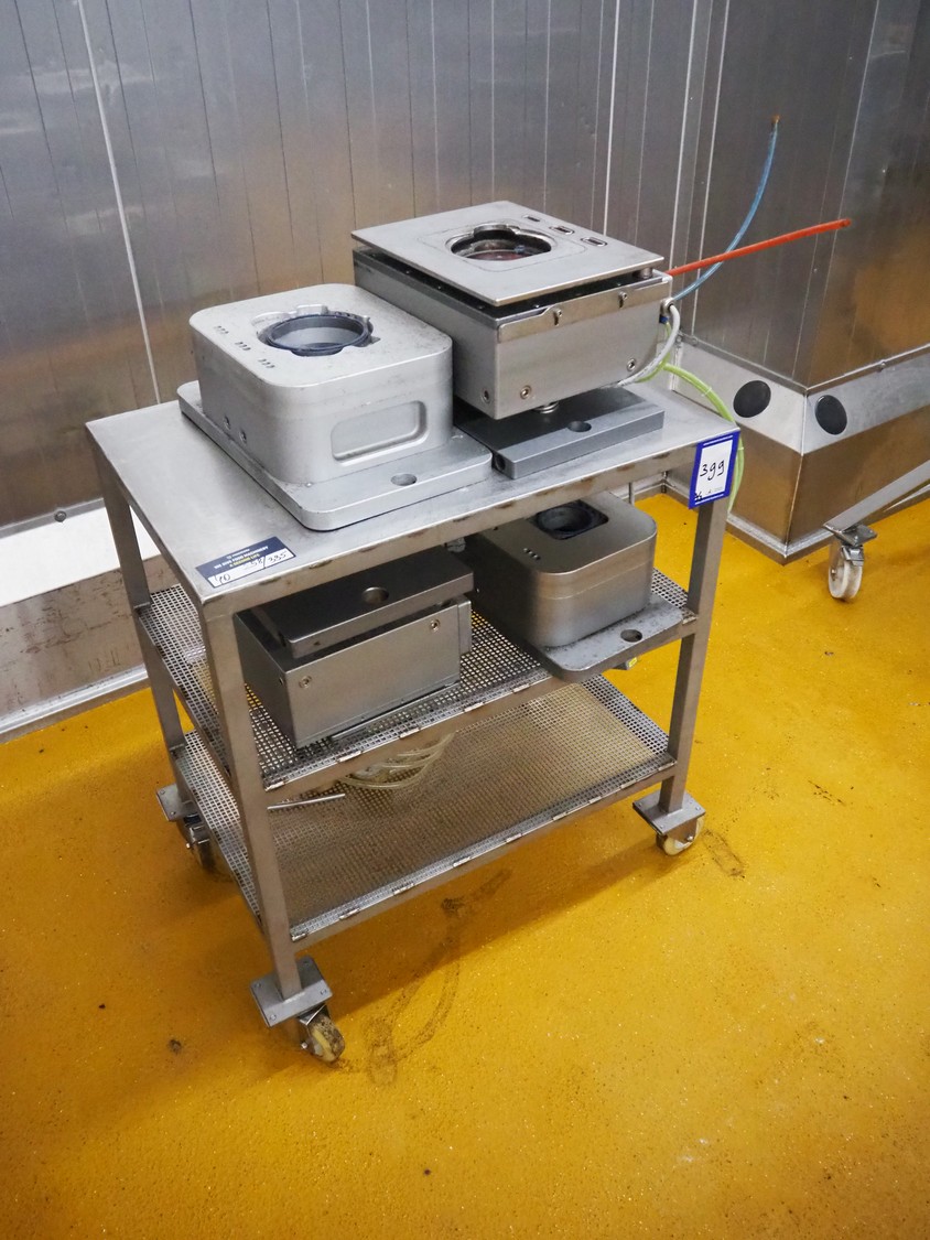 Sealpac GmbH traysealer with various dyes, type: Sealpac Mini, serial number: TVG 0346801, year of construction: 2001, 3 x 400/230 V, 1.5 kW, 270 kg, Busch vacuum pump, dimensions traysealer: 1050 mm x 1050 mm x 1800 mm, 2 trolleys with dyes, dimensions trolleys: 810 mm x 550 mm x 860 mm and 1000 mm x 600 mm x 1080 mm.