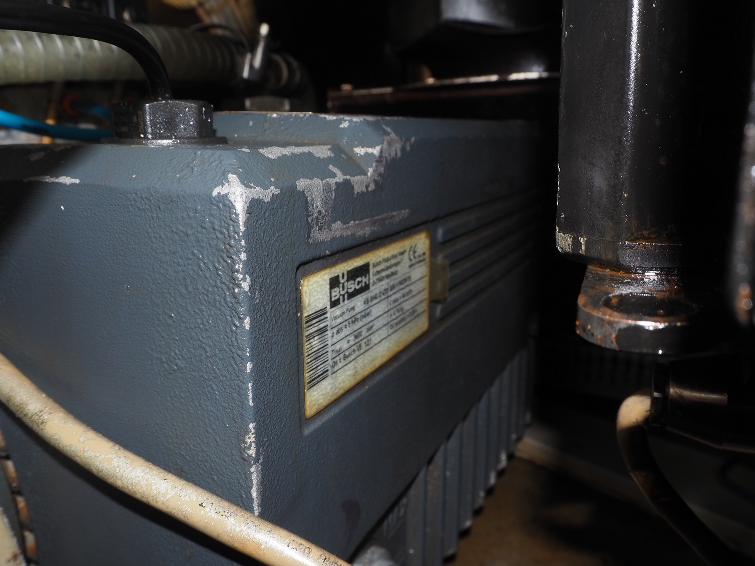 Handtmann vacuum filling machine with lifter for meat bins, type: VF630, number: 33562, year of construction: 2013, 400 V, 3 Ph, 50 Hz, 18.0 A, 12.5 kW, Busch vacuum pump, dimensions: 2000 mm x 1400 mm x 2200 mm.
