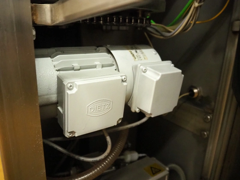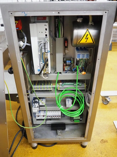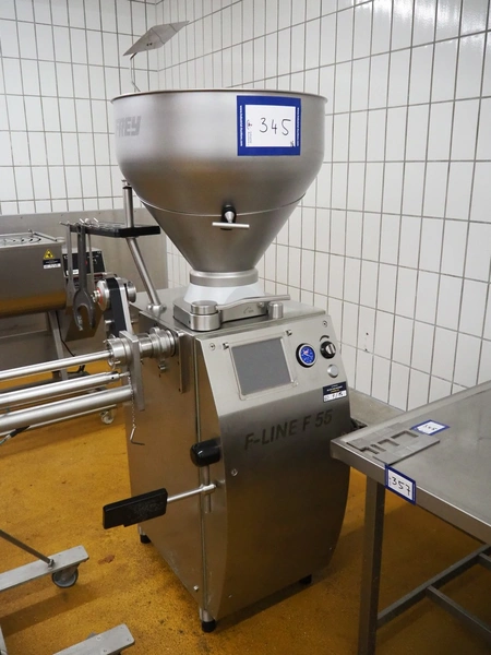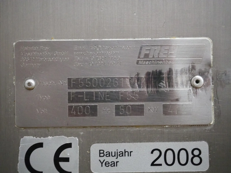 Frey vacuum filling machine with twisting attachment, type: F-Line F55, machine number: F55002618, year of construction: 2008, 400 V, 50 Hz, 4.2 kW, dimensions: 1050 mm x 1000 mm x 2000 mm. Missing rotor.