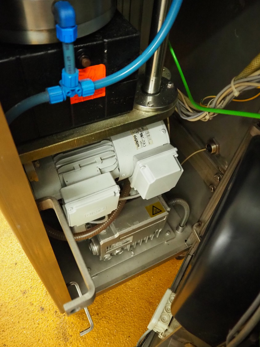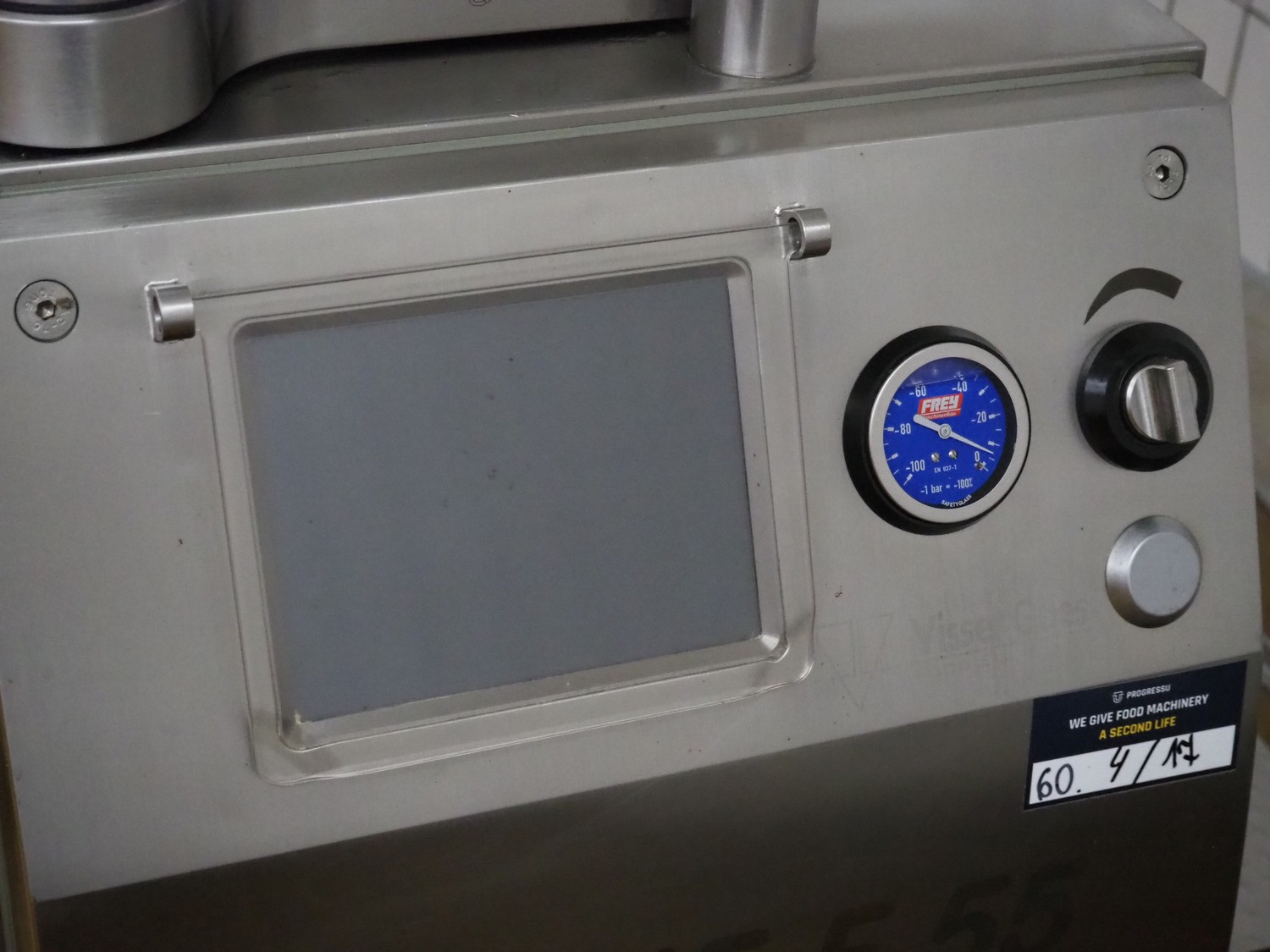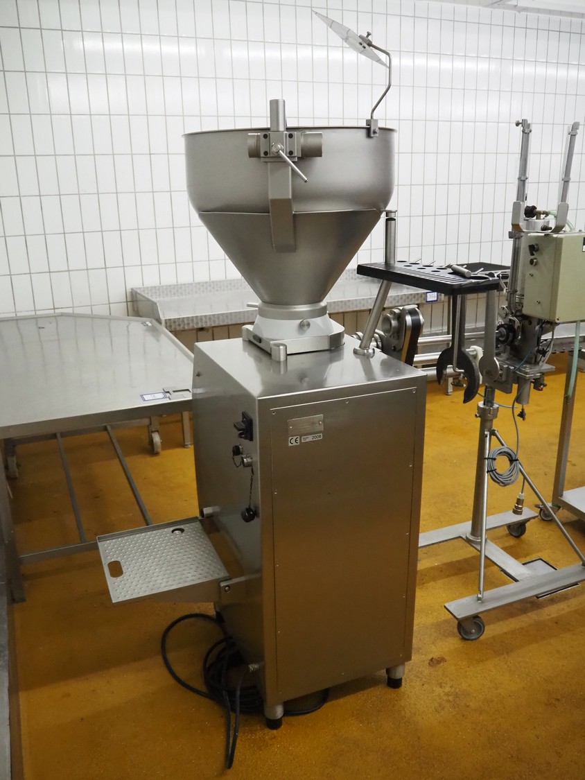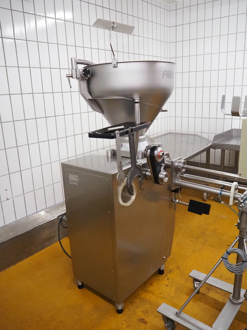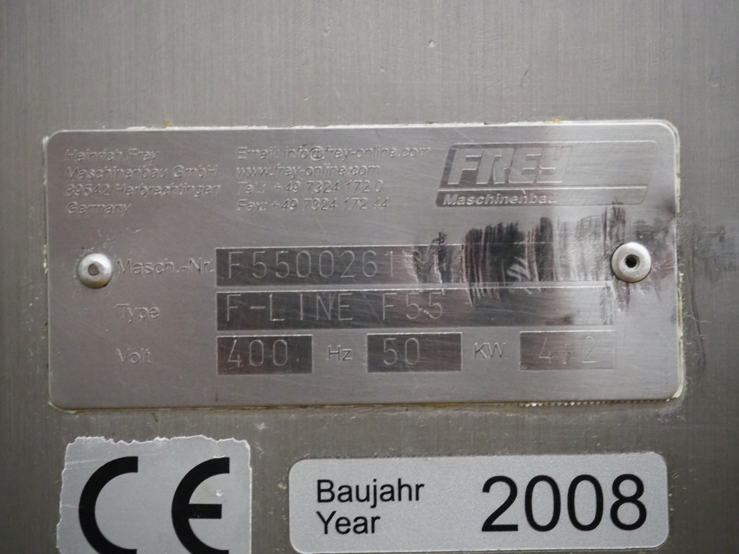 Frey vacuum filling machine with twisting attachment, type: F-Line F55, machine number: F55002618, year of construction: 2008, 400 V, 50 Hz, 4.2 kW, dimensions: 1050 mm x 1000 mm x 2000 mm. Missing rotor.