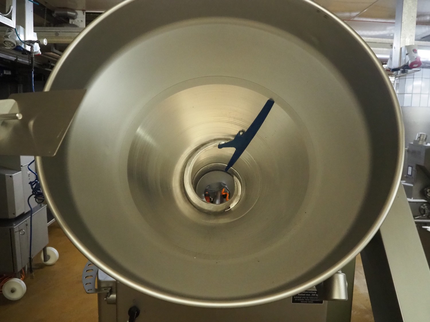 Handtmann vacuum filling machine with lifter for meat bins, type: VF630, number: 34671, year of construction: 2014, 400 V, 3 Ph, 50 Hz, 18.0 A, 12.5 kW, Busch vacuum pump, type: KB 0040 D IZO, serial number: DEM121500139, year of construction: 2021, capacity: 48 m³ per hour, dimensions: 2000 mm x 1400 mm x 2200 mm. Complete overhauled by Handtmann in 2022.
