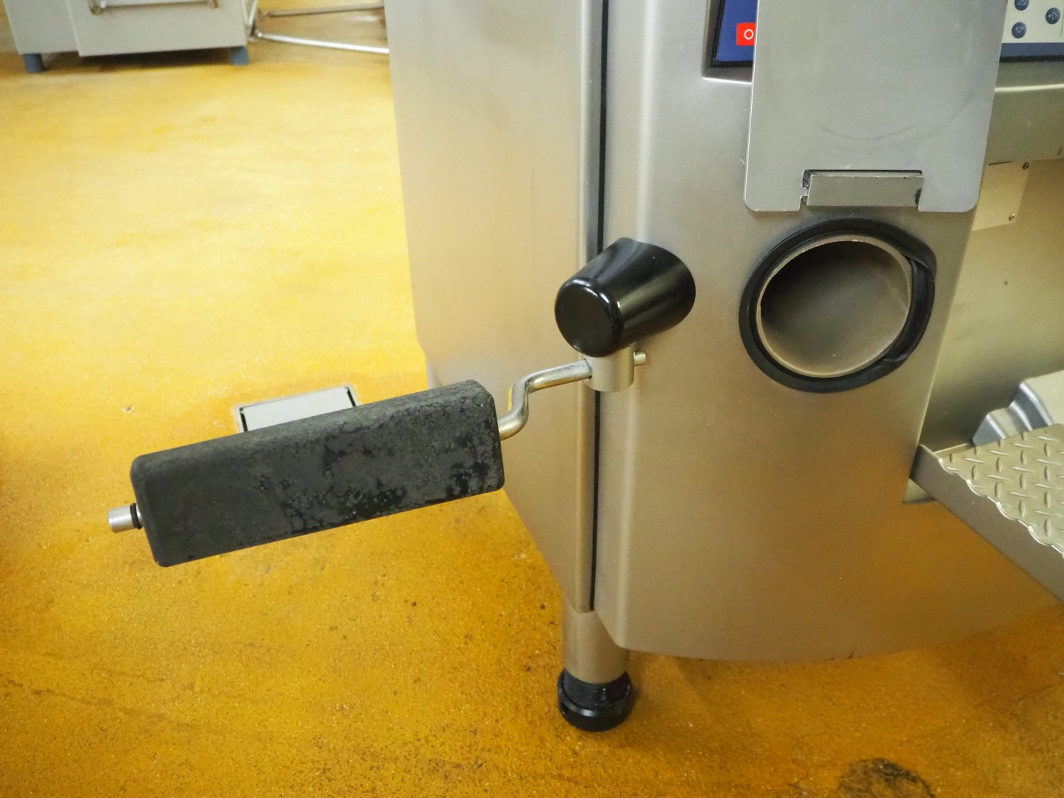 Handtmann vacuum filling machine with lifter for meat bins, type: VF630, number: 28079, year of construction: 2010, 400 V, 50 Hz, 18.0 A, 12.5 kW, Busch vacuum pump, type: KB 0040 D IZO, serial number: DEM122060546, year of construction: 2002, capacity: 48 m³ per hour, dimensions: 2000 mm x 1400 mm x 2200 mm. Complete overhauled by Handtmann in 2022.