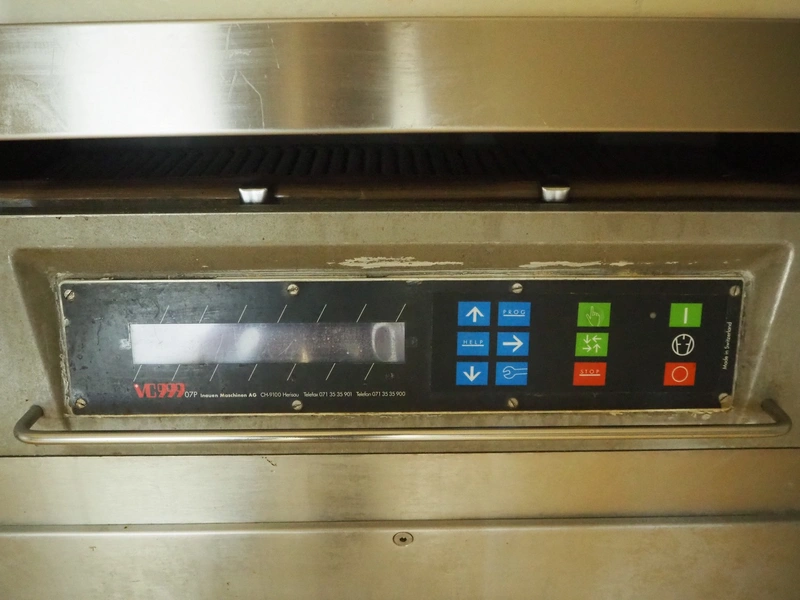 Inauen Maschinen AG vacuum machine, type: VC999/07 P | FNS 15 / 220, machine number: 07032346, 400 V, 3 Ph, 50 Hz, 15 A, 10 kW, dimensions chamber: 1100 mm x 510 mm, seal length: 1000 mm x (2x) 440 mm, s/s rollers, roller width: 390 mm, total dimensions: 1150 mm x 800 mm x 1500 mm. Without vacuum pump.