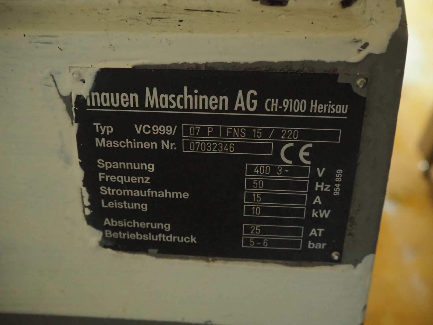 Inauen Maschinen AG vacuum machine, type: VC999/07 P | FNS 15 / 220, machine number: 07032346, 400 V, 3 Ph, 50 Hz, 15 A, 10 kW, dimensions chamber: 1100 mm x 510 mm, seal length: 1000 mm x (2x) 440 mm, s/s rollers, roller width: 390 mm, total dimensions: 1150 mm x 800 mm x 1500 mm. Without vacuum pump.