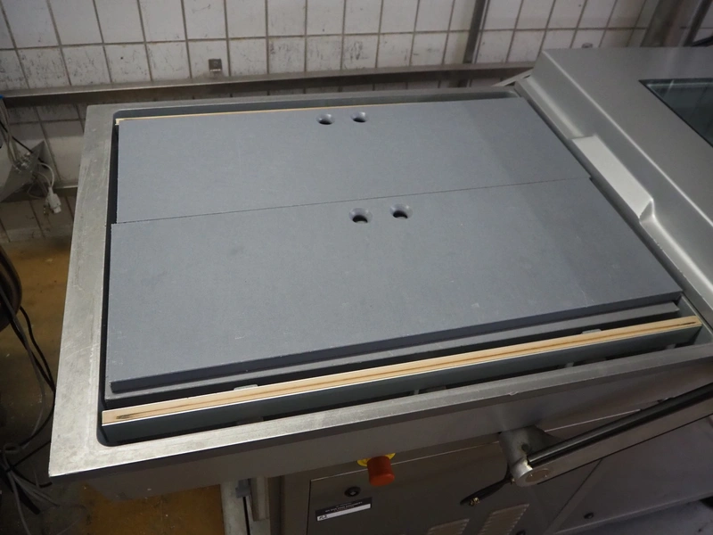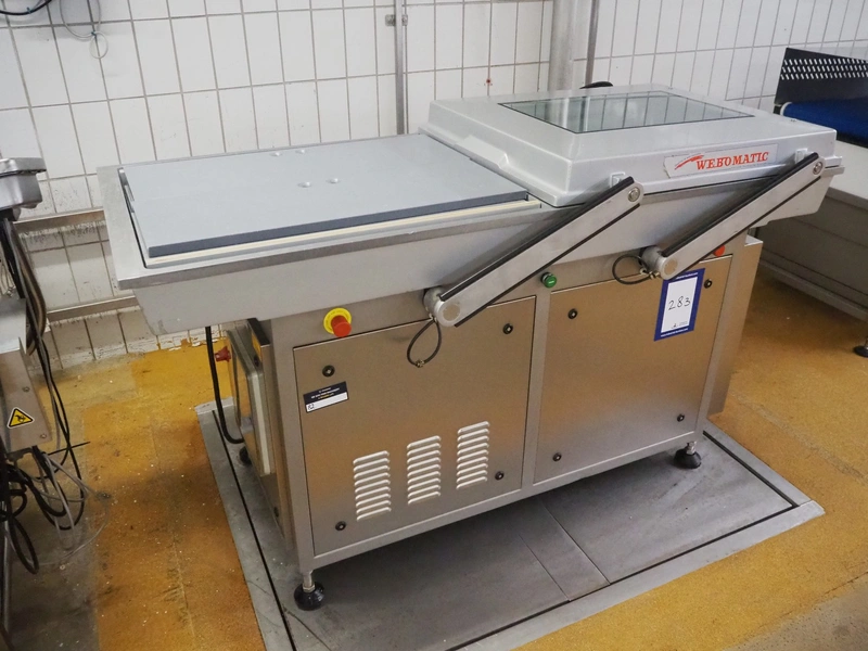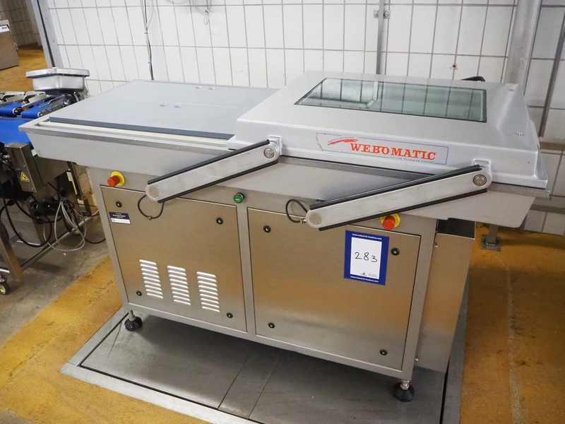 Webomatic double chamber vacuum machine, type: PNC 20, machine number: 5310HK2646, 400 V, 3 Ph, 50 Hz, 13.5 A, 5.5 kW, Busch vacuum pump, type: RA 0250 C 4ZI CUZZ, number: 0E02610201, capacity: 250 m³ per hour, seal length: (2x) 820 mm, dimensions chamber: 850 mm x 710 mm, total dimensions: 1900 mm x 900 mm x 1100 mm.
