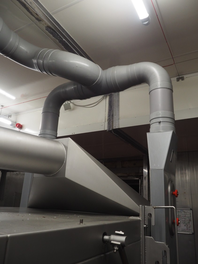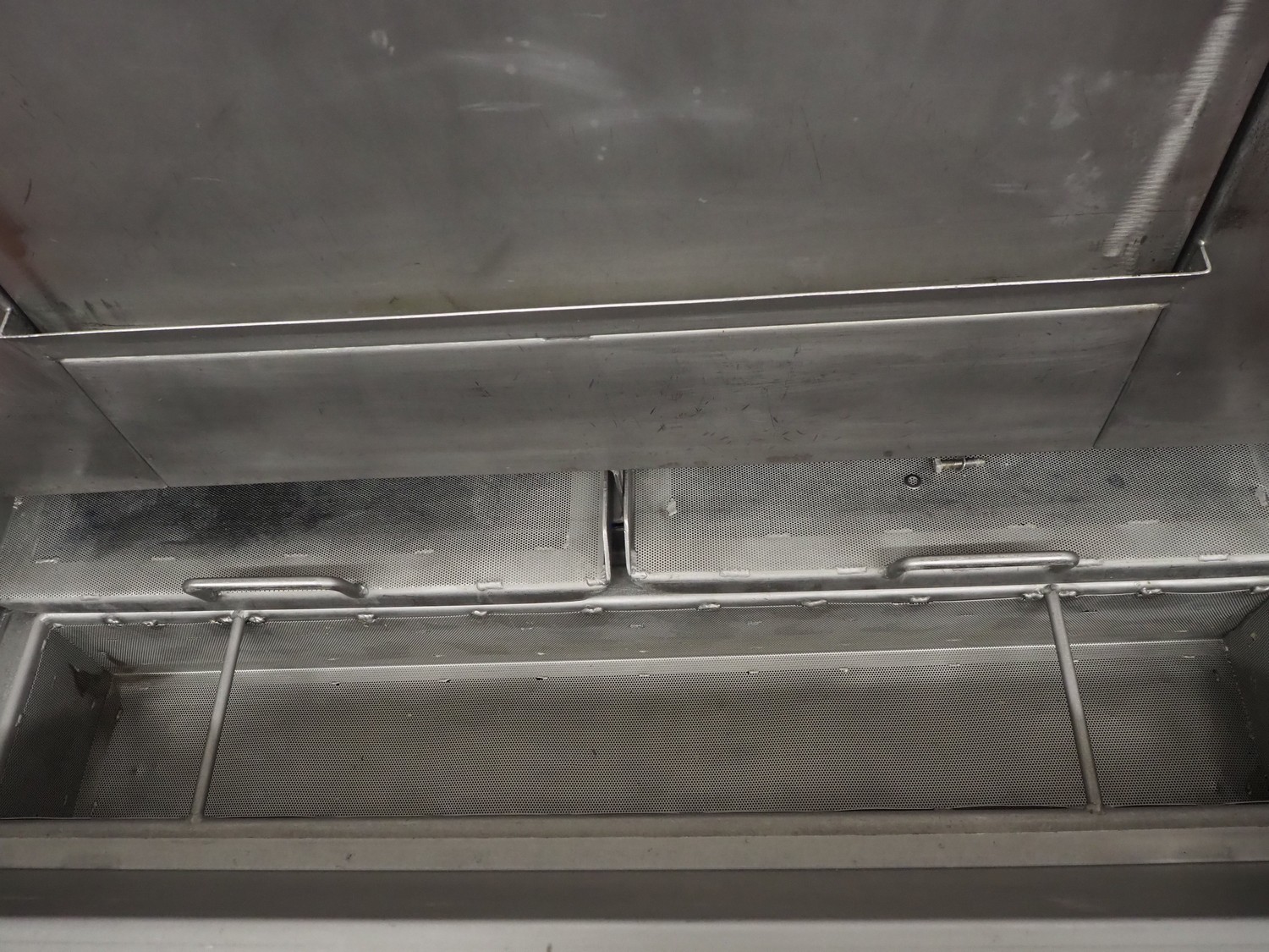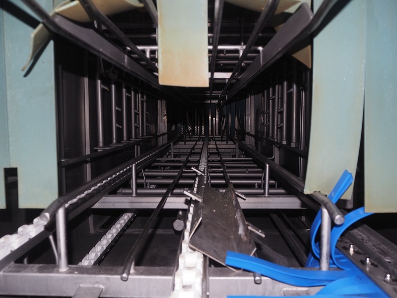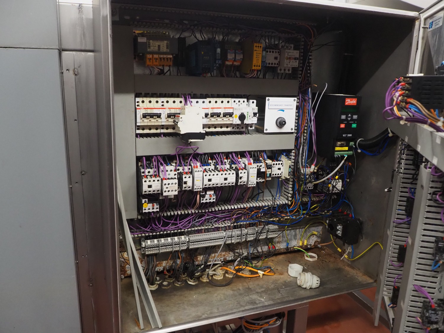 Boldt Systems washing machine for crates, buckets, lids and pallets, model: WSD 360, serial number: BWO 98-091, year of construction: 1989, suitable for the following emballage, plastic buckets, dimensions: Ø 230 mm x 215 mm, Ø 265 mm x 290 mm, Ø 325 mm x 330 mm and Ø 365 mm x 410 mm, plastic lids, dimensions: max Ø 375 mm x 25 mm, plastic crates, dimensions: 550 mm x 390 mm x 300 mm and plastic pallets, dimensions: 1200 mm x 800 mm x 155/170 mm, clearance: 840 mm x 400 mm, total dimensions: 5700 mm x 1800 mm x 2750 mm.