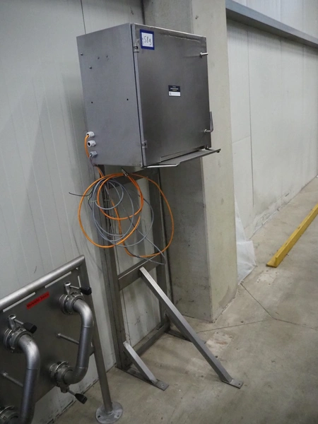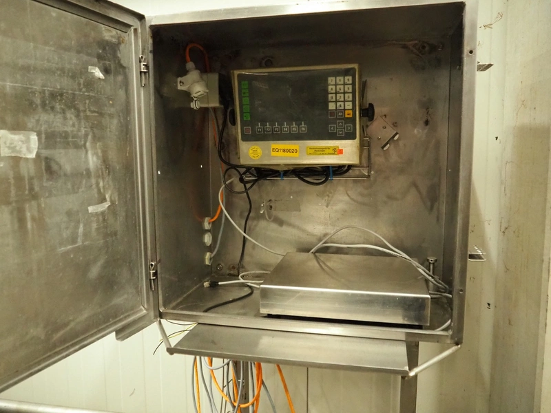 S/s wall mounted cabinet with MeWa scale, model: IT6000E, serial number: 1705043, 110-240 V, 50/60 Hz, 0.2 A, maximum weight: 6/15 kg, minimum weight: 0.040/0.100 kg, e=: 0.002/0.005 kg, dimensions scale: 310 mm x 270 mm, total dimensions: 600 mm x 350 mm x 600 mm.